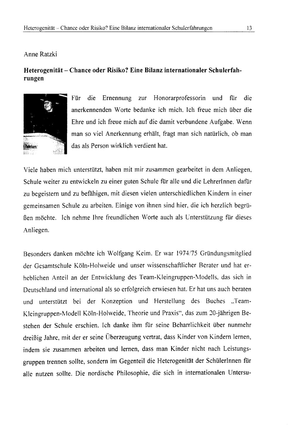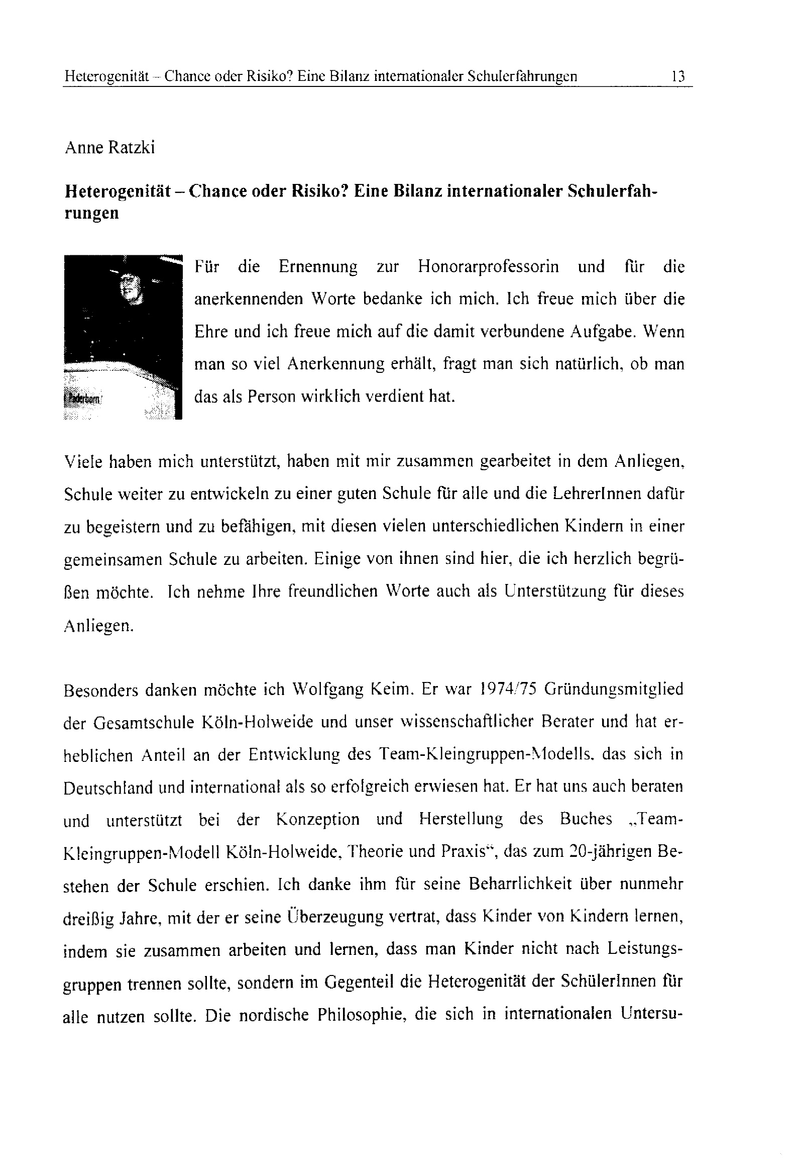 Verleihung einer Honorarprofessur an Prof. Dr. Anne Ratzki / [Hrsg.: Institut für Erziehungswissenschaft in der Fakultät für Kulturwissenschaften der Universität Paderborn. Red.: Wolfgang Keim]