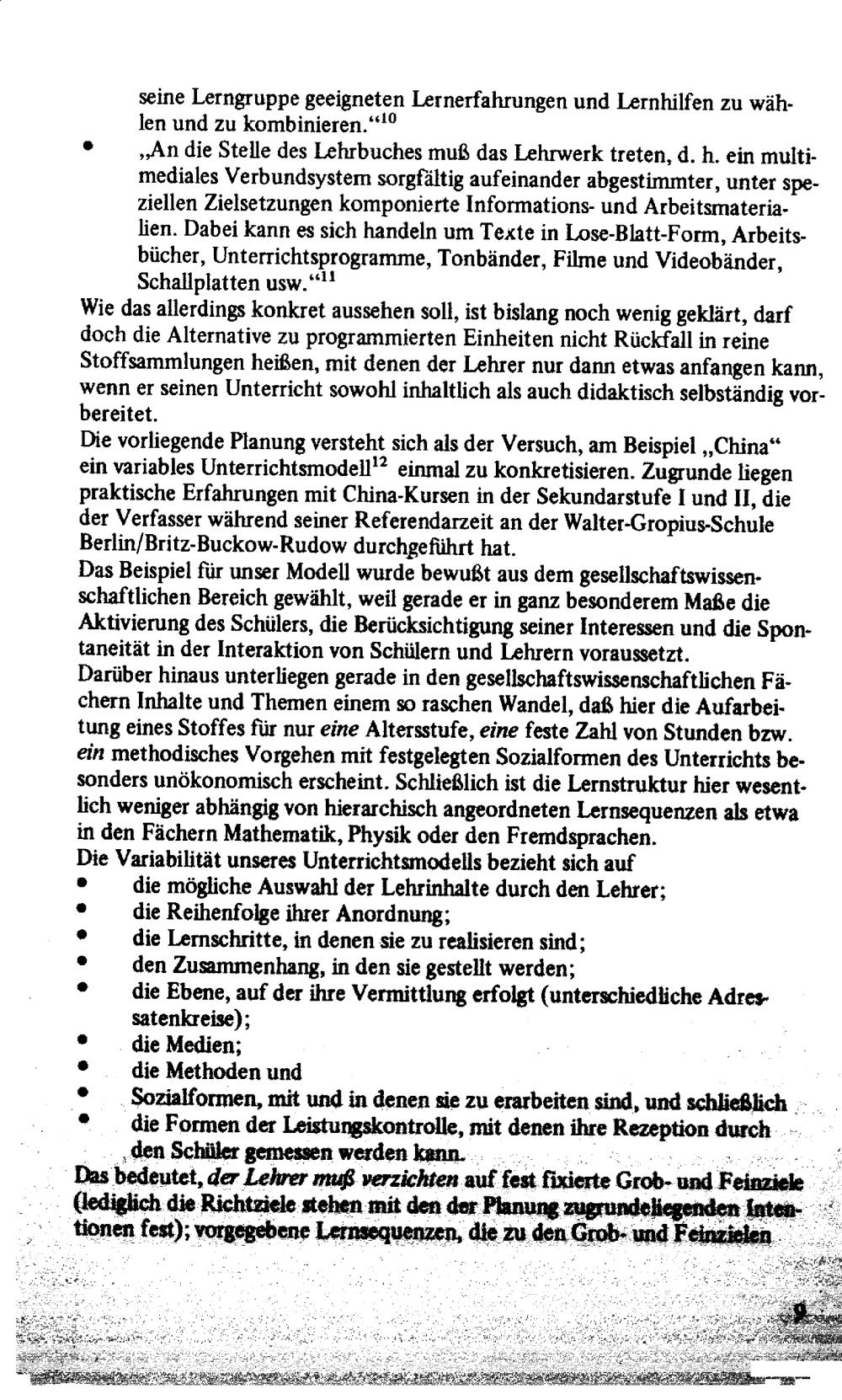 Variable Unterrichtsplanung am Beispiel China, Teil I : Didaktischer Kommentar, Modellbeschreibung, Lehrerbegleitbögen
