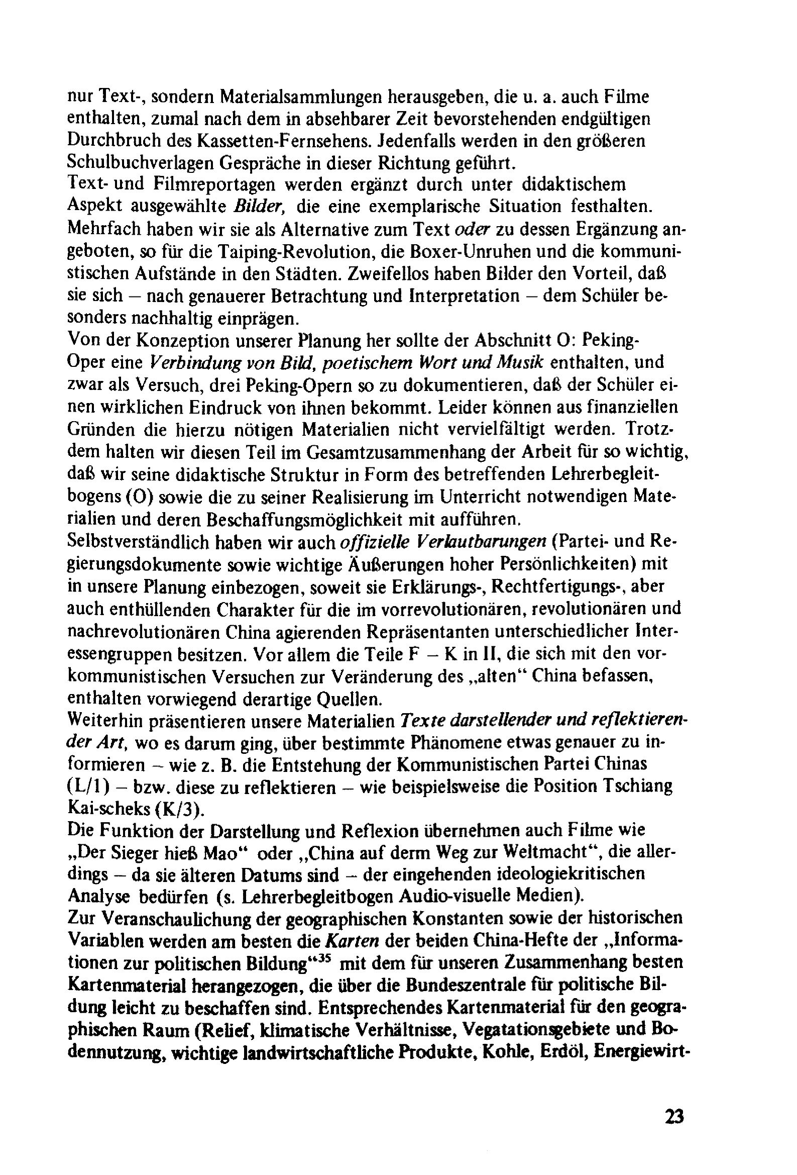 Variable Unterrichtsplanung am Beispiel China, Teil I : Didaktischer Kommentar, Modellbeschreibung, Lehrerbegleitbögen