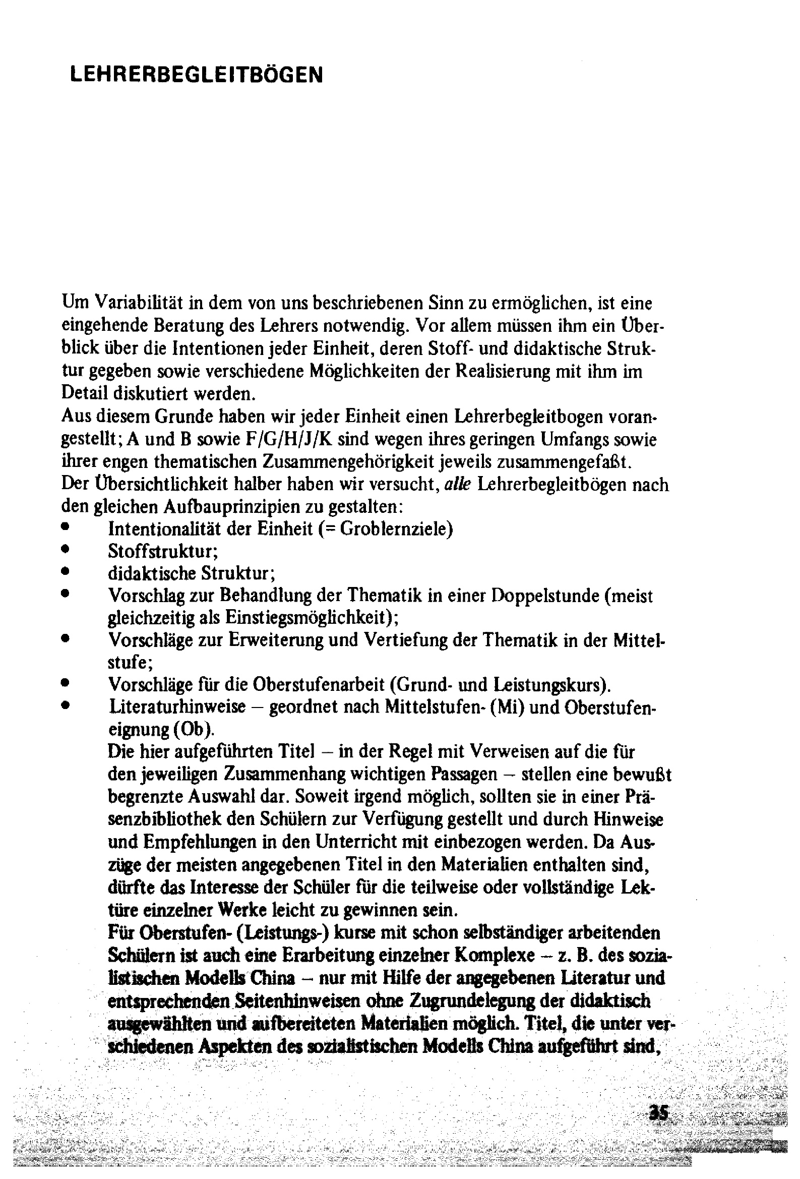 Variable Unterrichtsplanung am Beispiel China, Teil I : Didaktischer Kommentar, Modellbeschreibung, Lehrerbegleitbögen