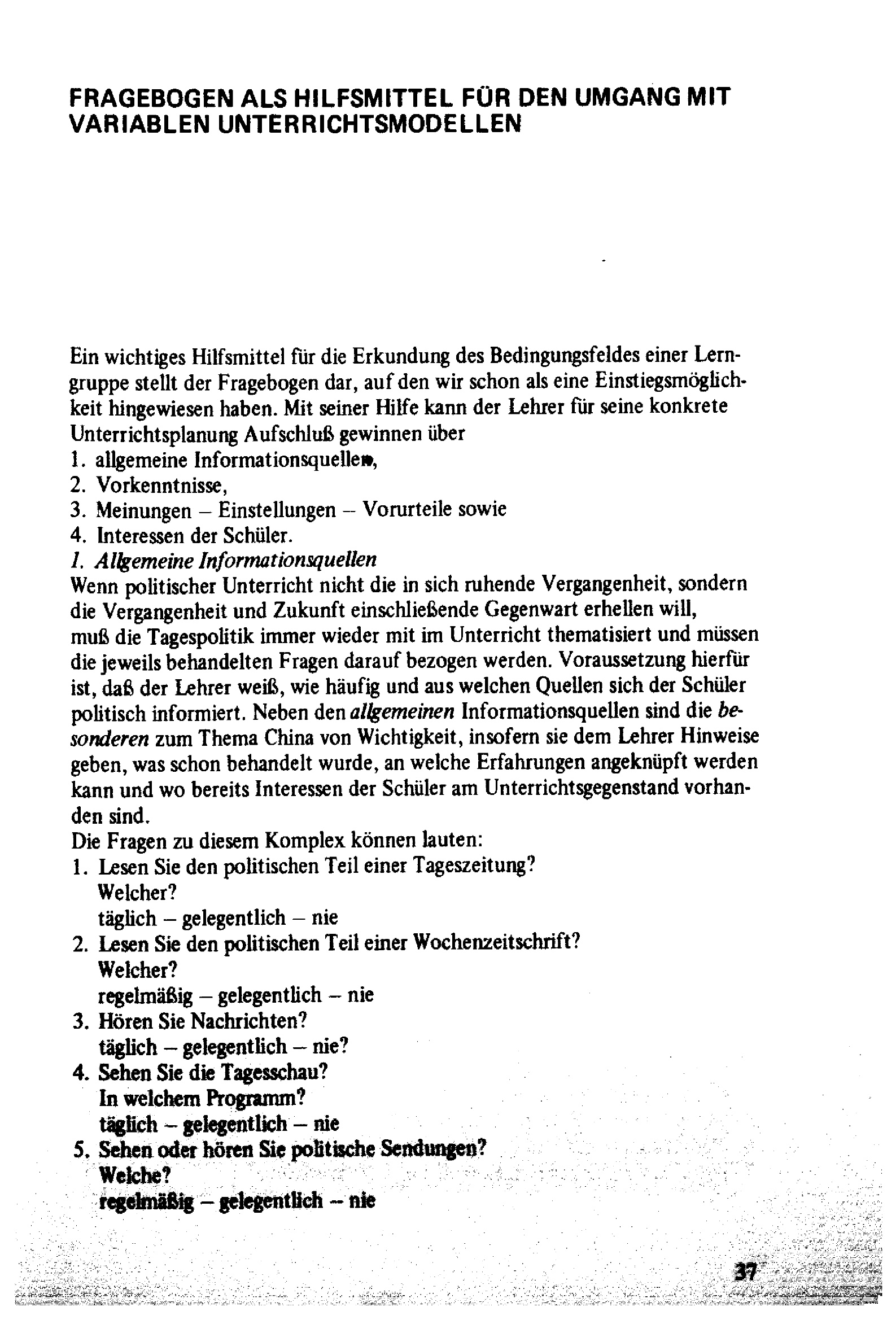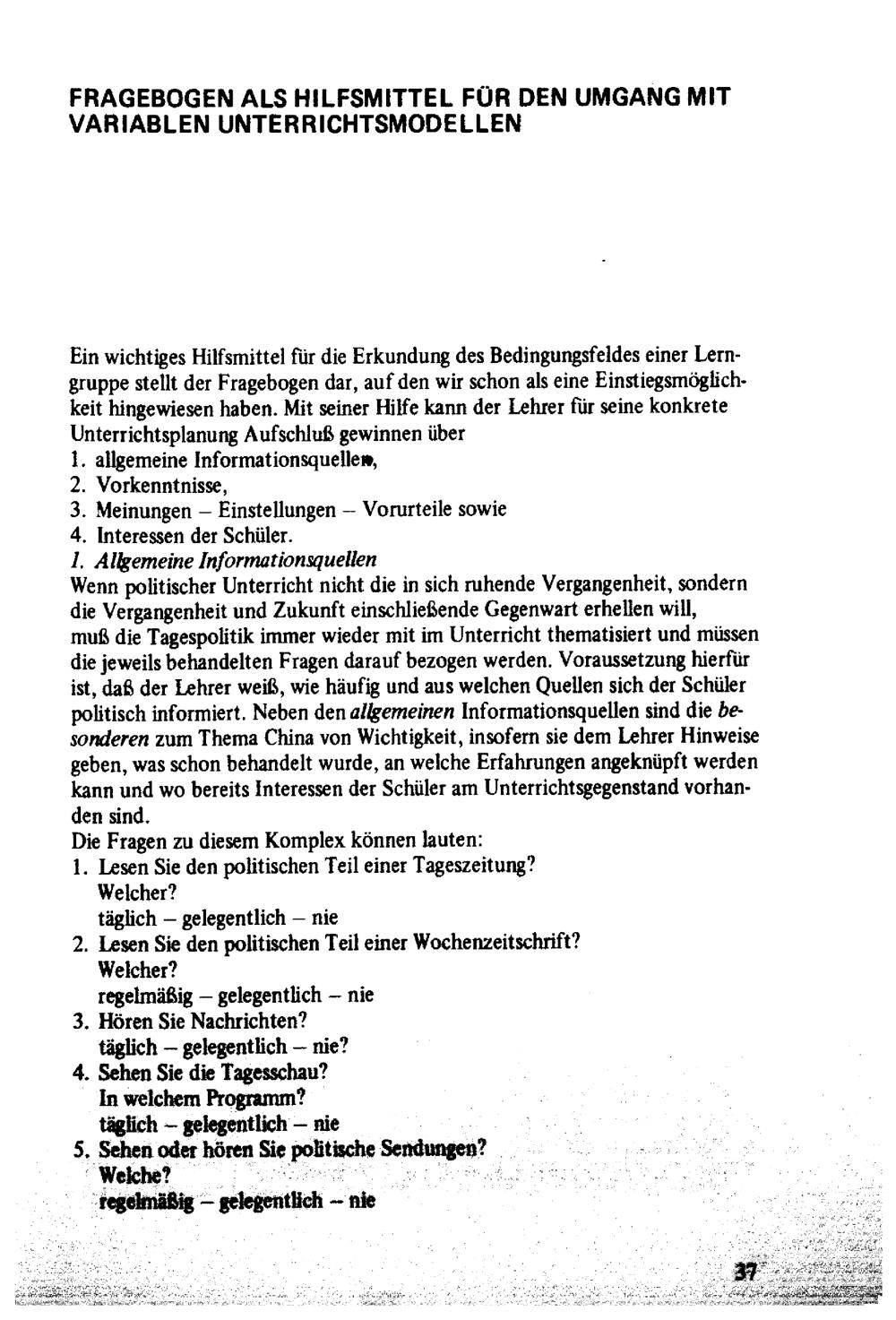 Variable Unterrichtsplanung am Beispiel China, Teil I : Didaktischer Kommentar, Modellbeschreibung, Lehrerbegleitbögen
