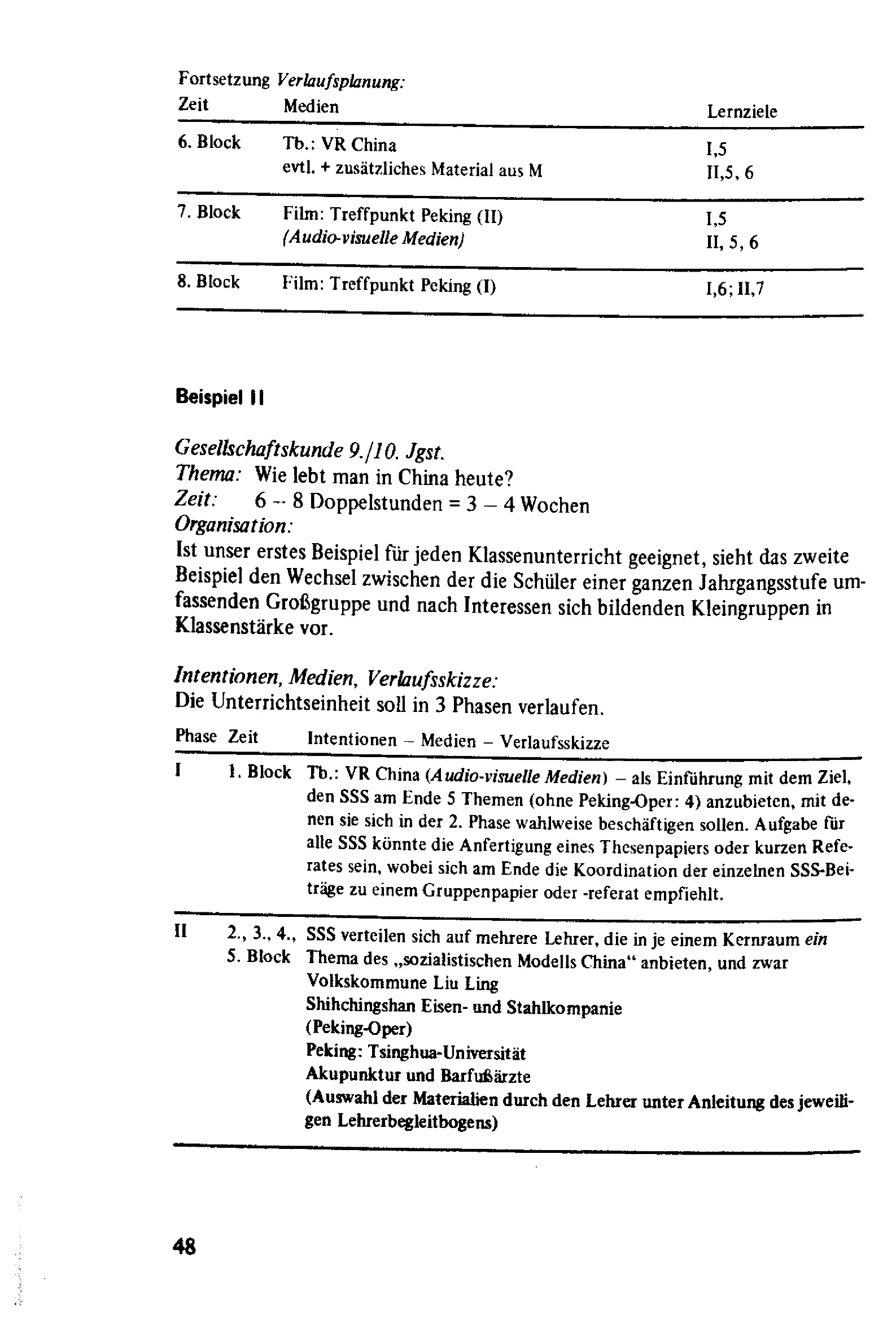 Variable Unterrichtsplanung am Beispiel China, Teil I : Didaktischer Kommentar, Modellbeschreibung, Lehrerbegleitbögen