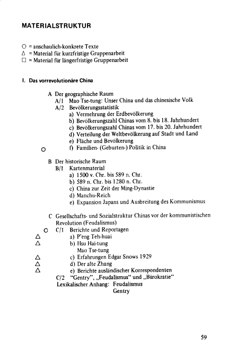Variable Unterrichtsplanung am Beispiel China, Teil I : Didaktischer Kommentar, Modellbeschreibung, Lehrerbegleitbögen