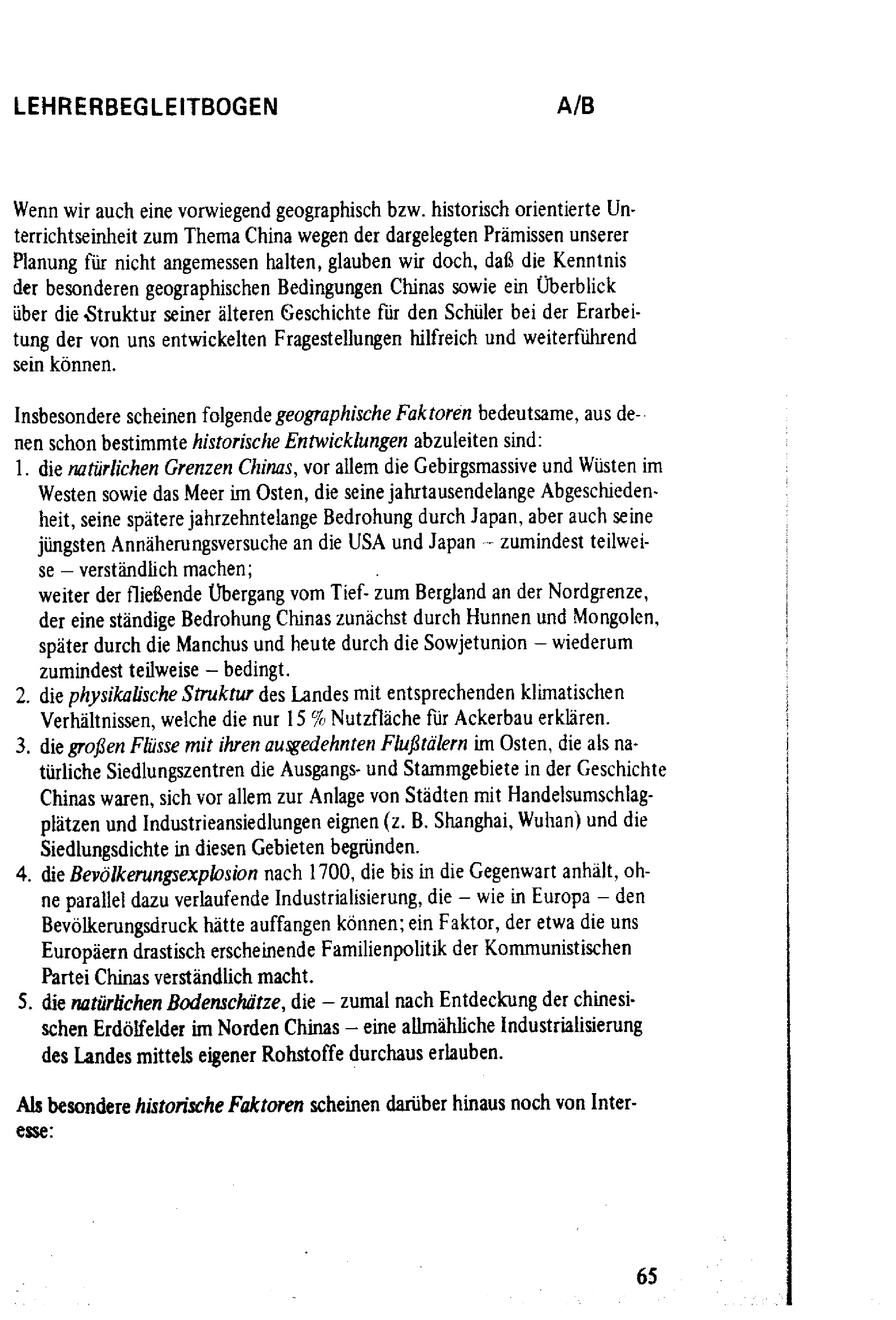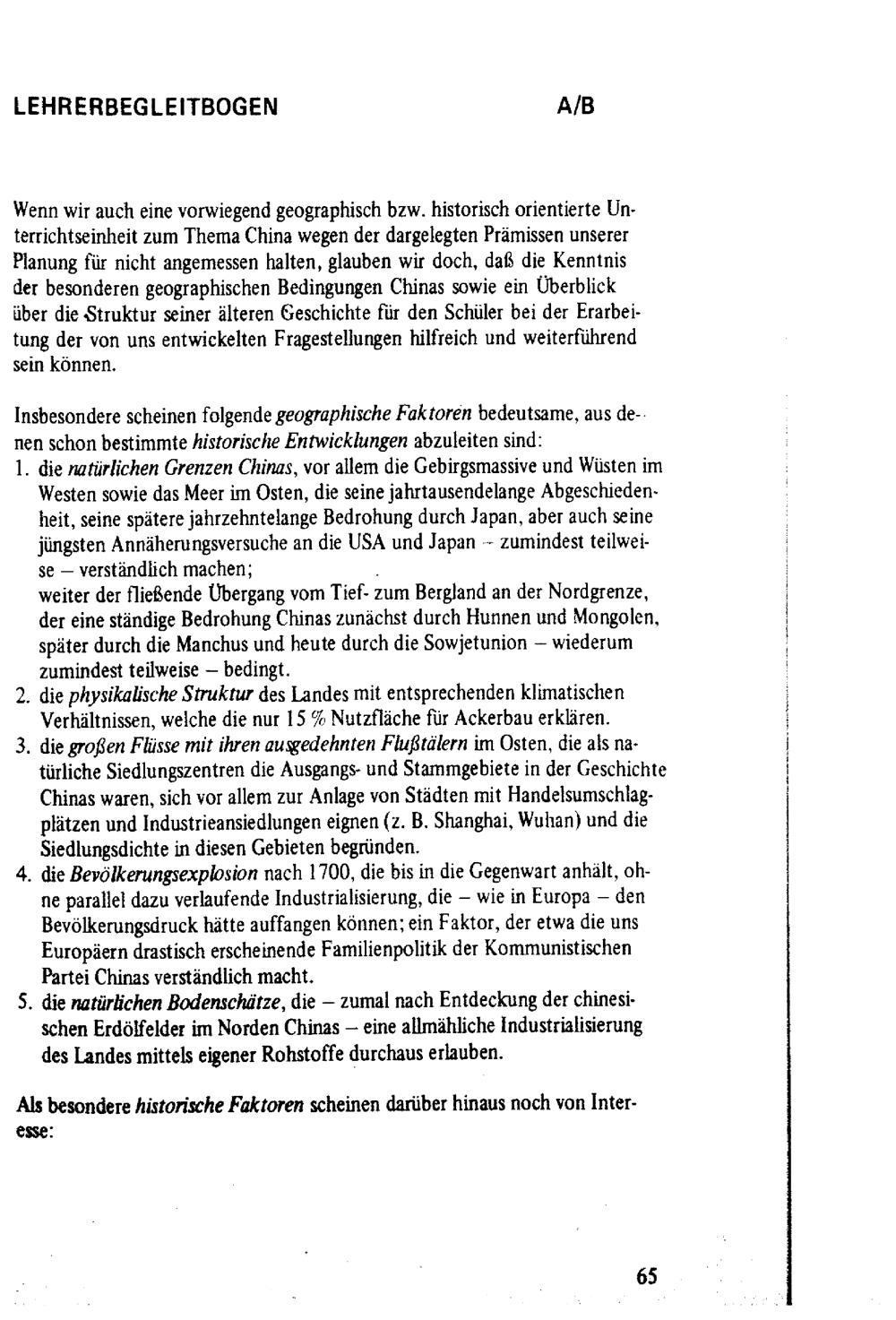 Variable Unterrichtsplanung am Beispiel China, Teil I : Didaktischer Kommentar, Modellbeschreibung, Lehrerbegleitbögen