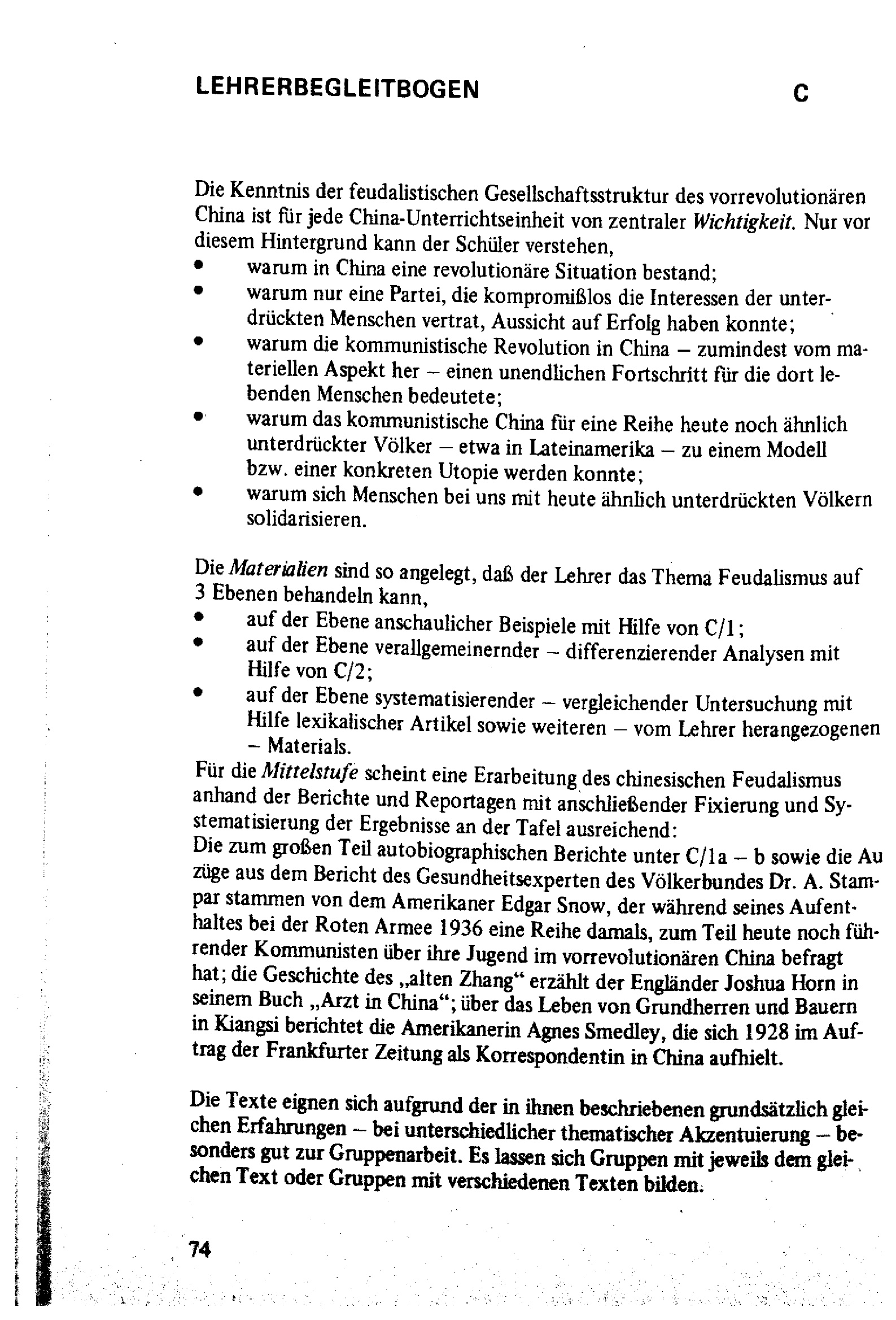 Variable Unterrichtsplanung am Beispiel China, Teil I : Didaktischer Kommentar, Modellbeschreibung, Lehrerbegleitbögen