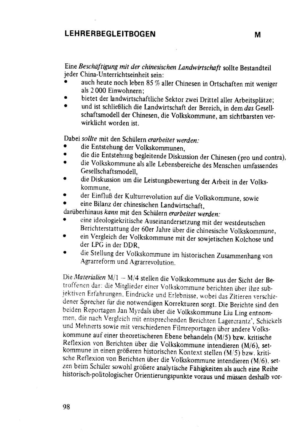 Variable Unterrichtsplanung am Beispiel China, Teil I : Didaktischer Kommentar, Modellbeschreibung, Lehrerbegleitbögen