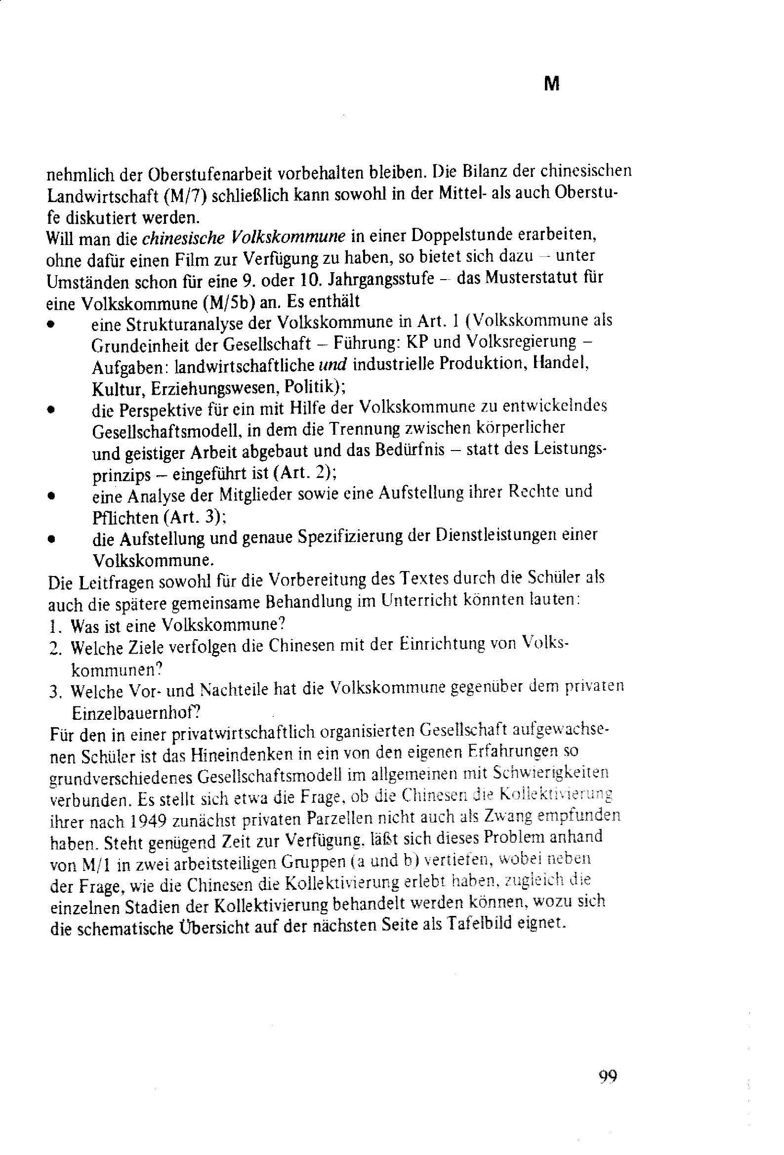 Variable Unterrichtsplanung am Beispiel China, Teil I : Didaktischer Kommentar, Modellbeschreibung, Lehrerbegleitbögen