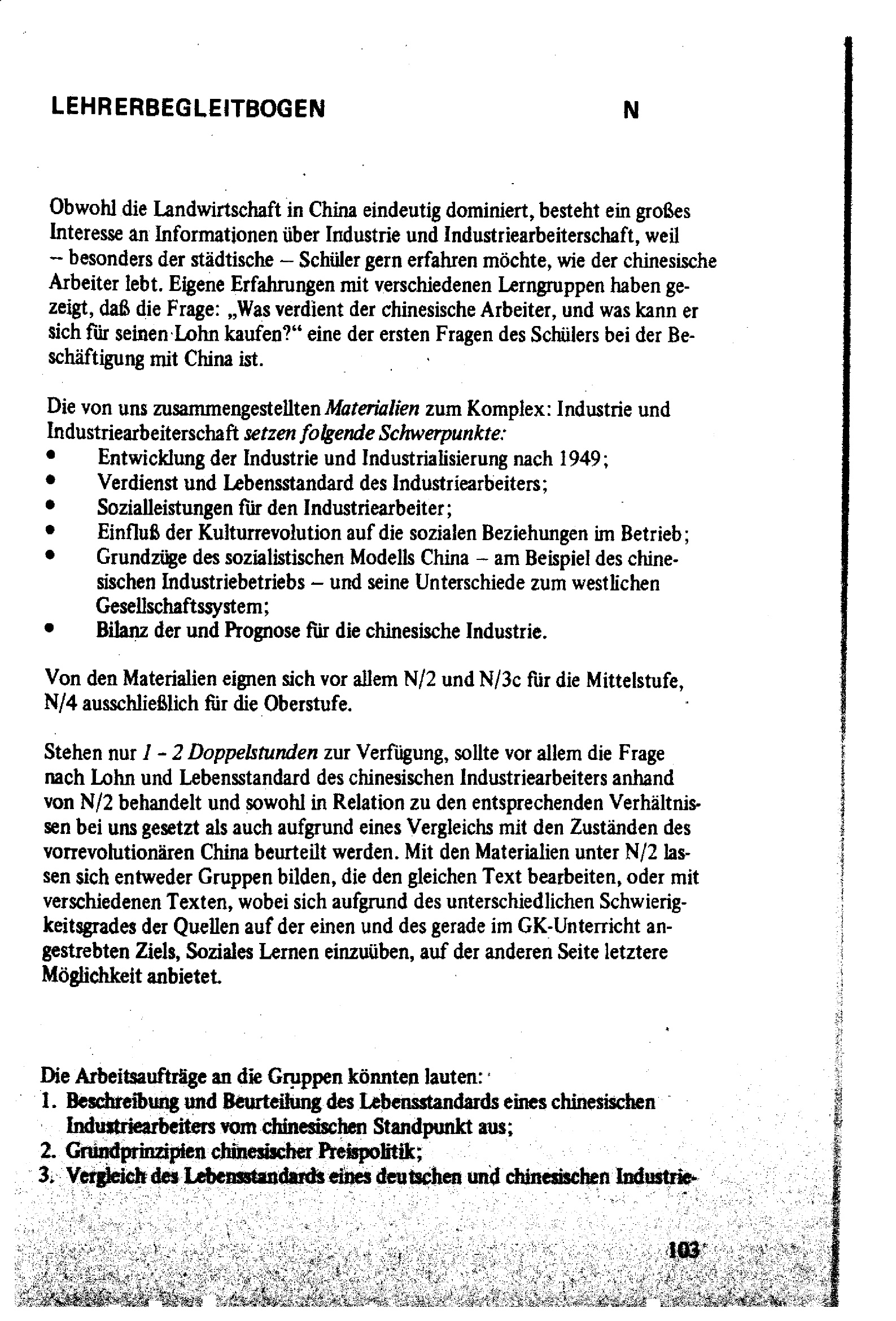 Variable Unterrichtsplanung am Beispiel China, Teil I : Didaktischer Kommentar, Modellbeschreibung, Lehrerbegleitbögen