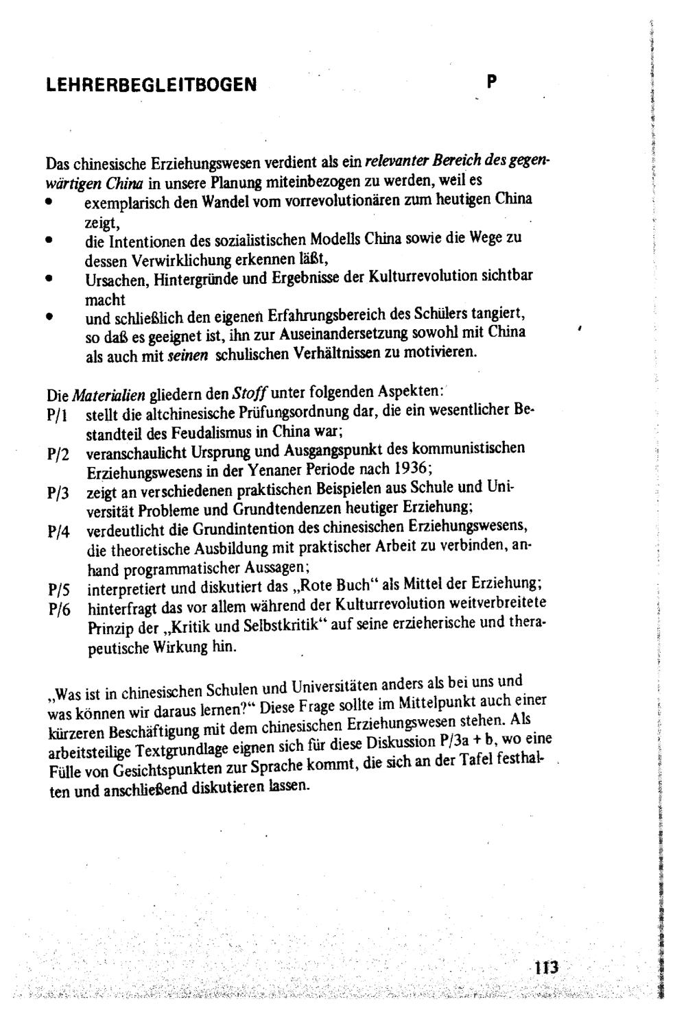 Variable Unterrichtsplanung am Beispiel China, Teil I : Didaktischer Kommentar, Modellbeschreibung, Lehrerbegleitbögen