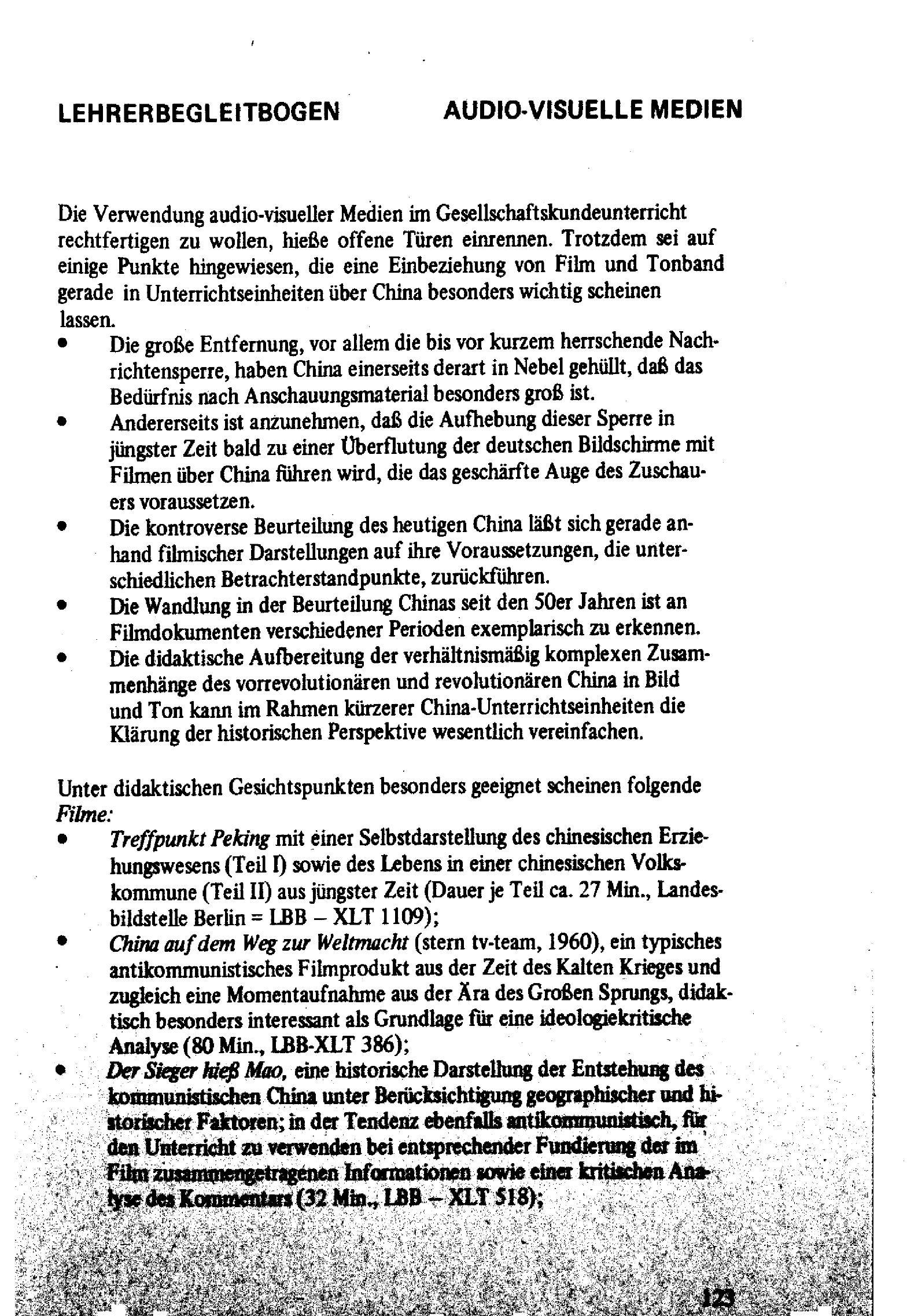 Variable Unterrichtsplanung am Beispiel China, Teil I : Didaktischer Kommentar, Modellbeschreibung, Lehrerbegleitbögen