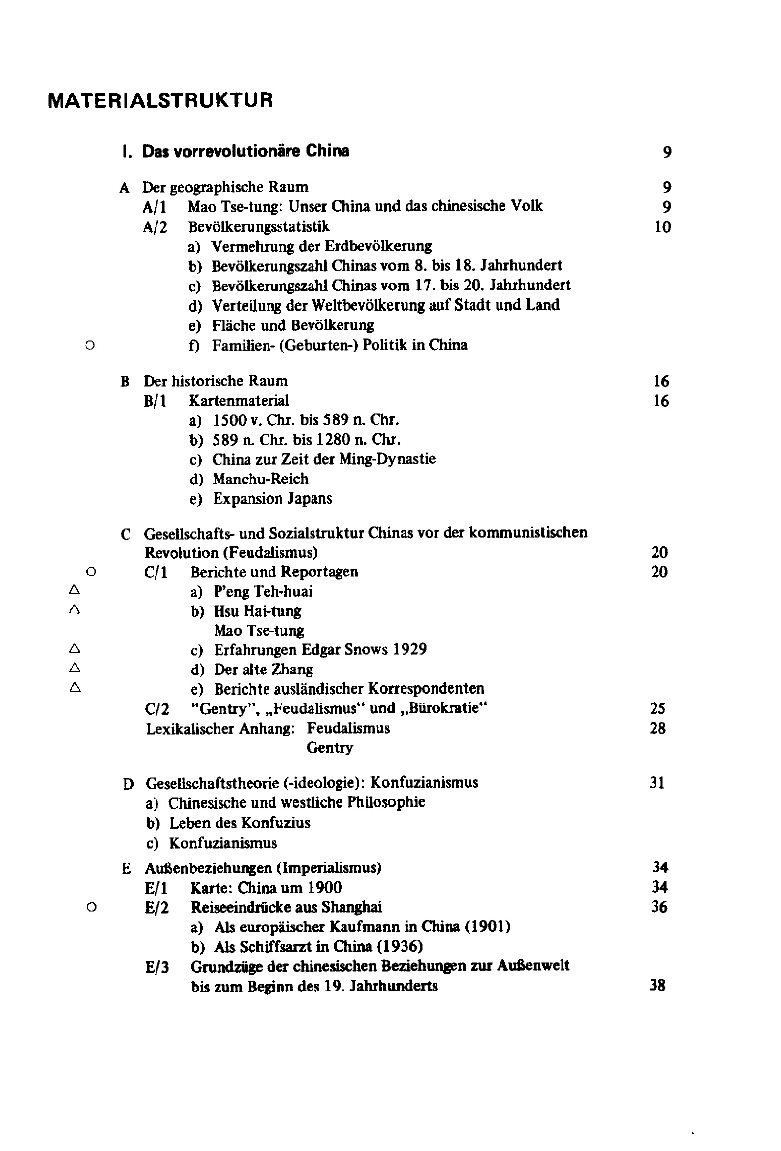 Variable Unterrichtsplanung am Beispiel China, Teil II : Materialien, Vorrevolutionäres China, sozialistisches Modell China