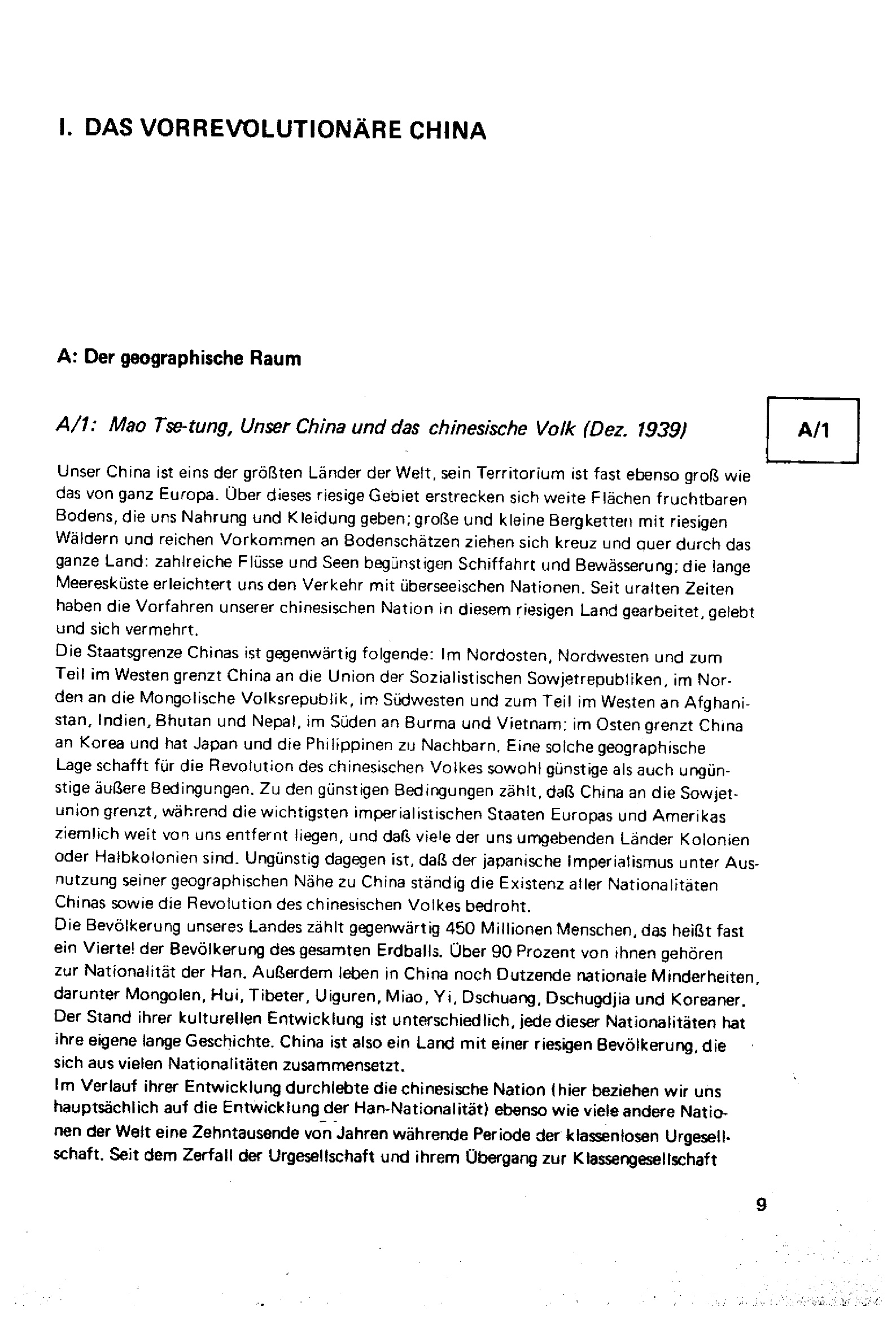 Variable Unterrichtsplanung am Beispiel China, Teil II : Materialien, Vorrevolutionäres China, sozialistisches Modell China