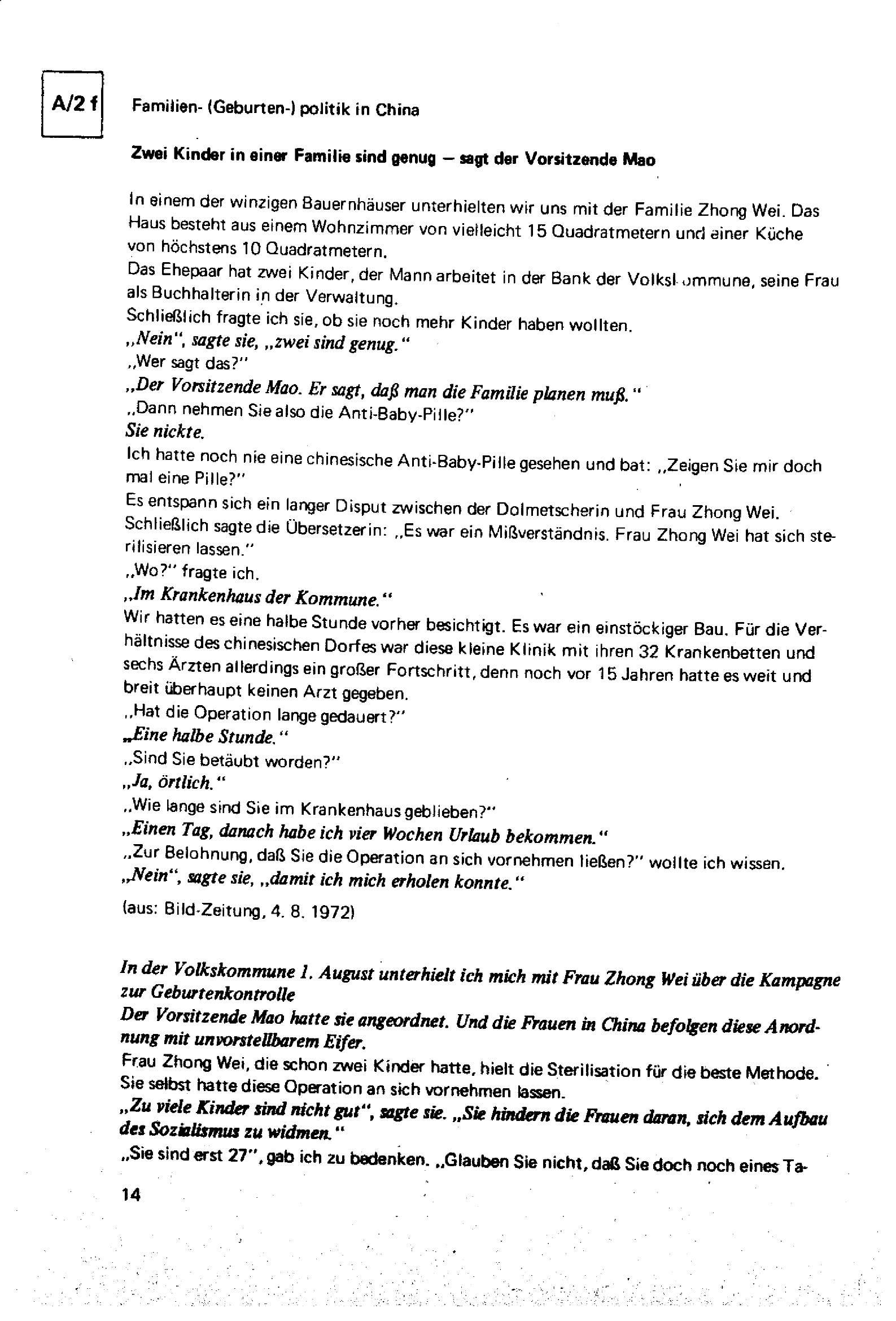 Variable Unterrichtsplanung am Beispiel China, Teil II : Materialien, Vorrevolutionäres China, sozialistisches Modell China