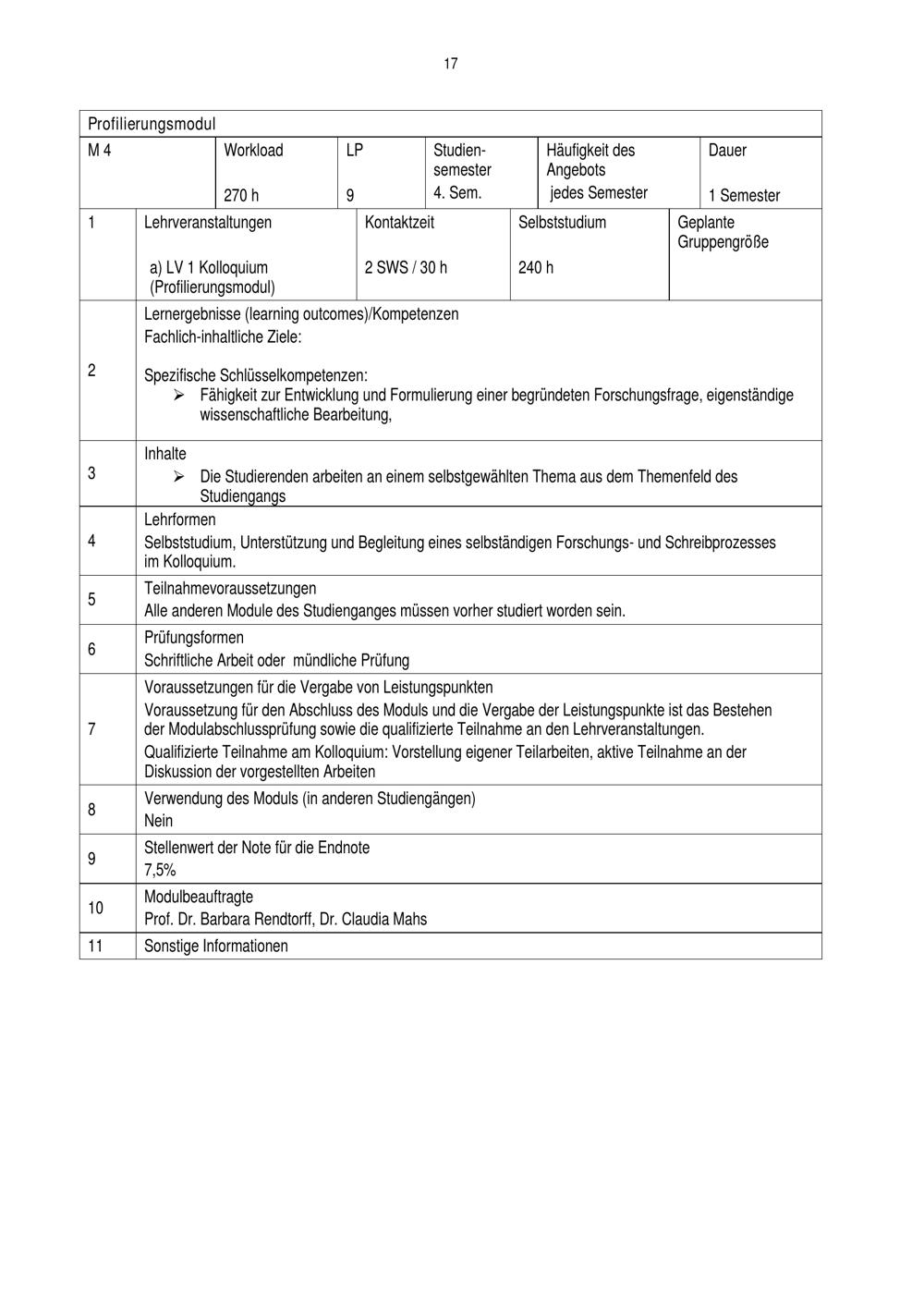 Fachspezifische Bestimmungen der Prüfungsordnung für den Masterstudiengang „Kultur und Gesellschaft“ für den Teilstudiengang Geschlechterstudien / Gender Studies der Fakultät für Kulturwissenschaften an der Universität Paderborn : vom 28. Mai 2014