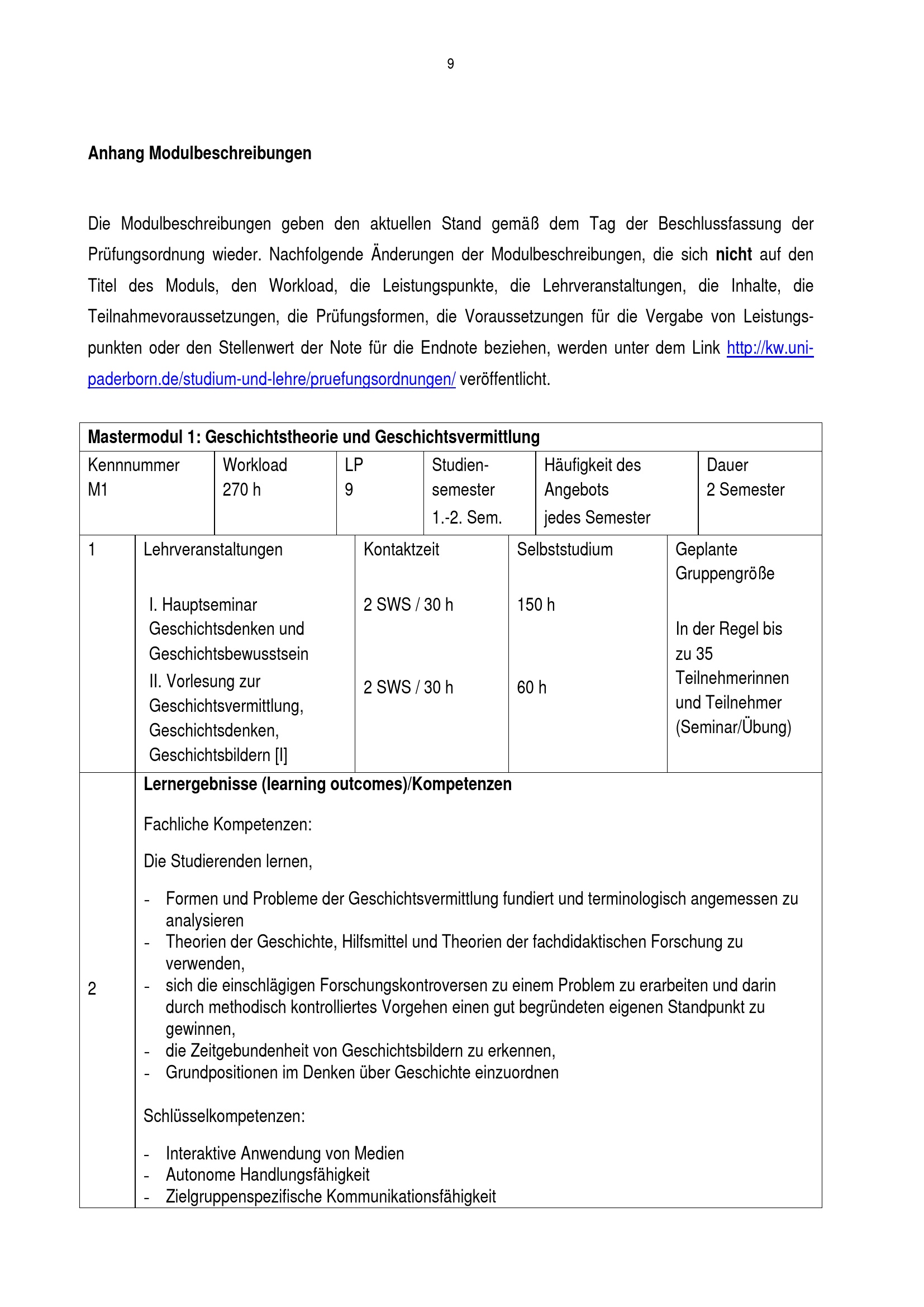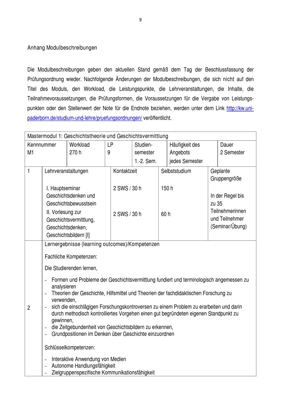 Fachspezifische Bestimmungen der Prüfungsordnung für den Masterstudiengang „Kultur und Gesellschaft“ für den Teilstudiengang Geschichte der Fakultät für Kulturwissenschaften an der Universität Paderborn : vom 28. Mai 2014
