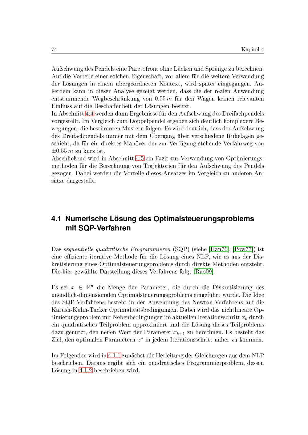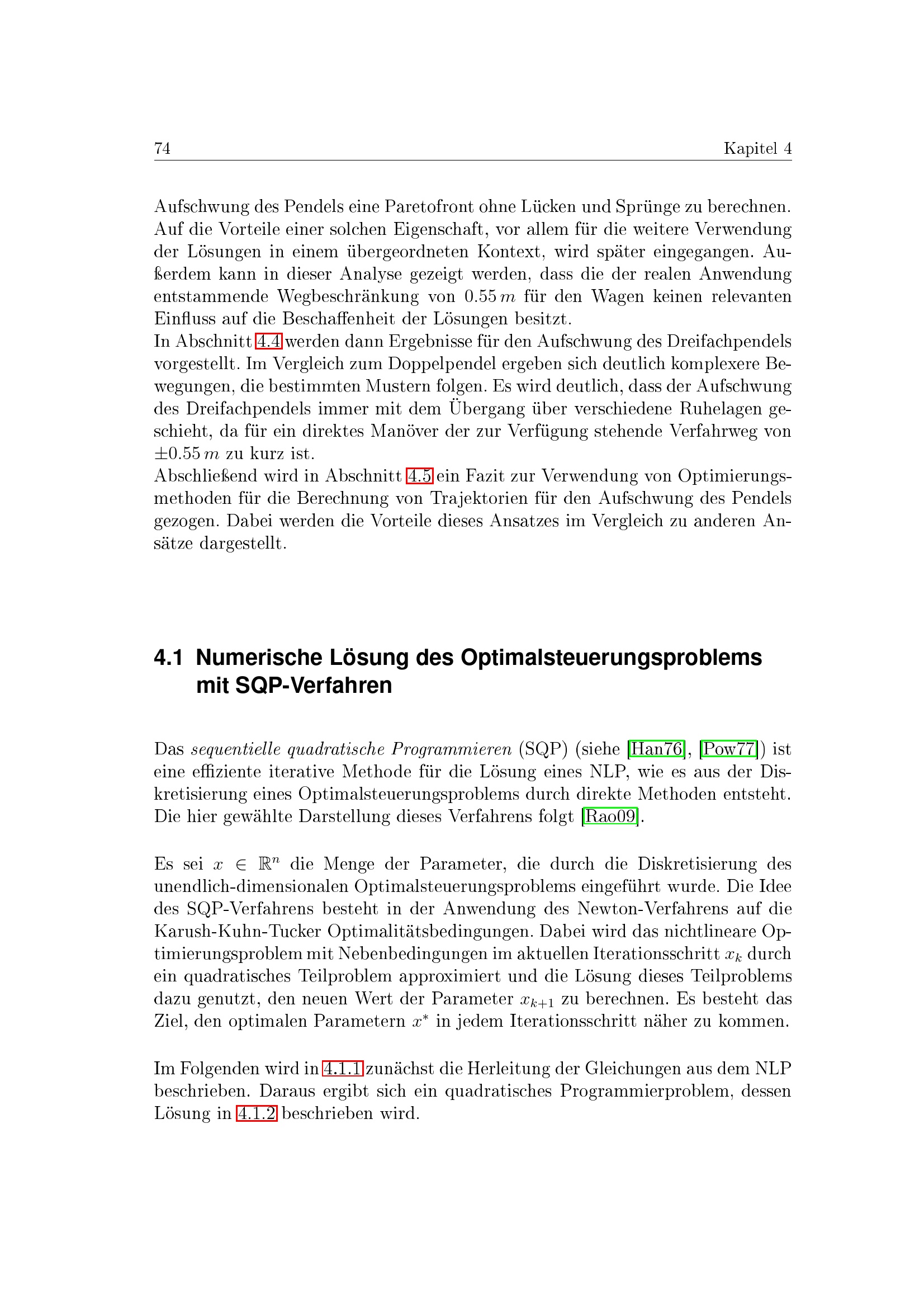 Numerische Lösung des Optimalsteuerungsproblems mit SQP-Verfahren