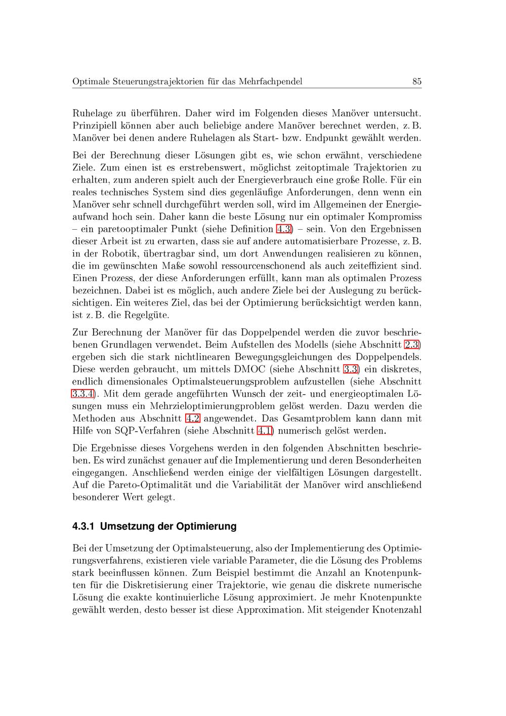 Optimale Steuerung und Mehrzieloptimierung von dynamischen Systemen untersucht am Beispiel des Mehrfachpendels