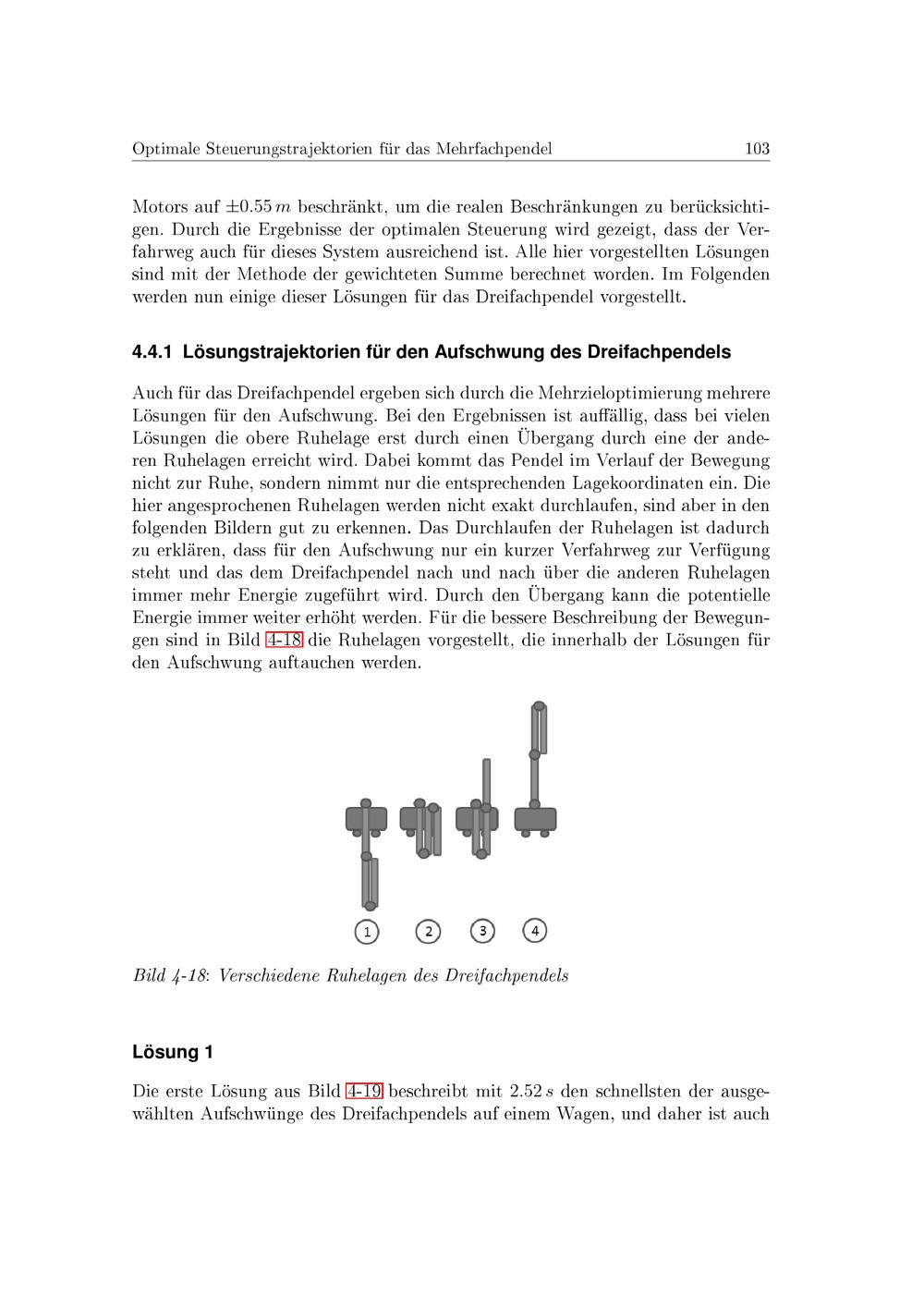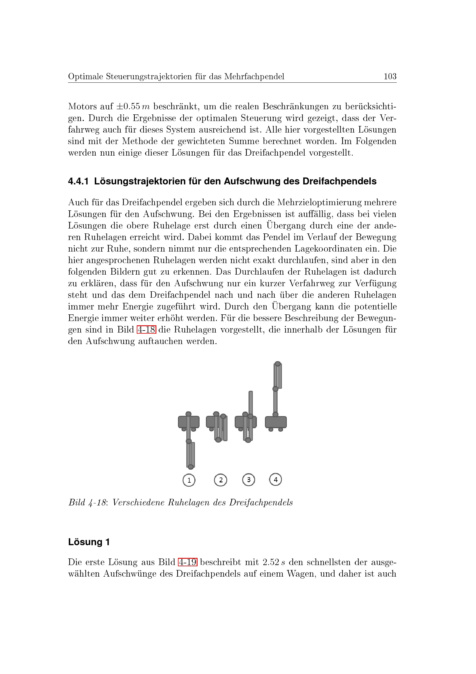 Lösungstrajektorien für den Aufschwung des Dreifachpendels