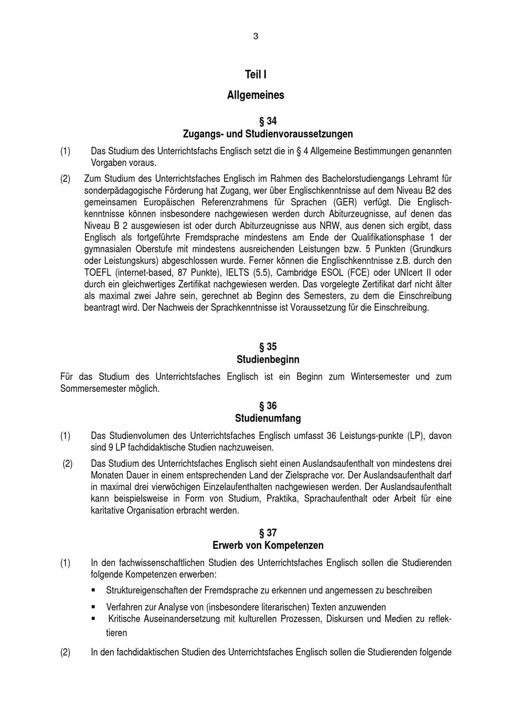 § 36 Studienumfang