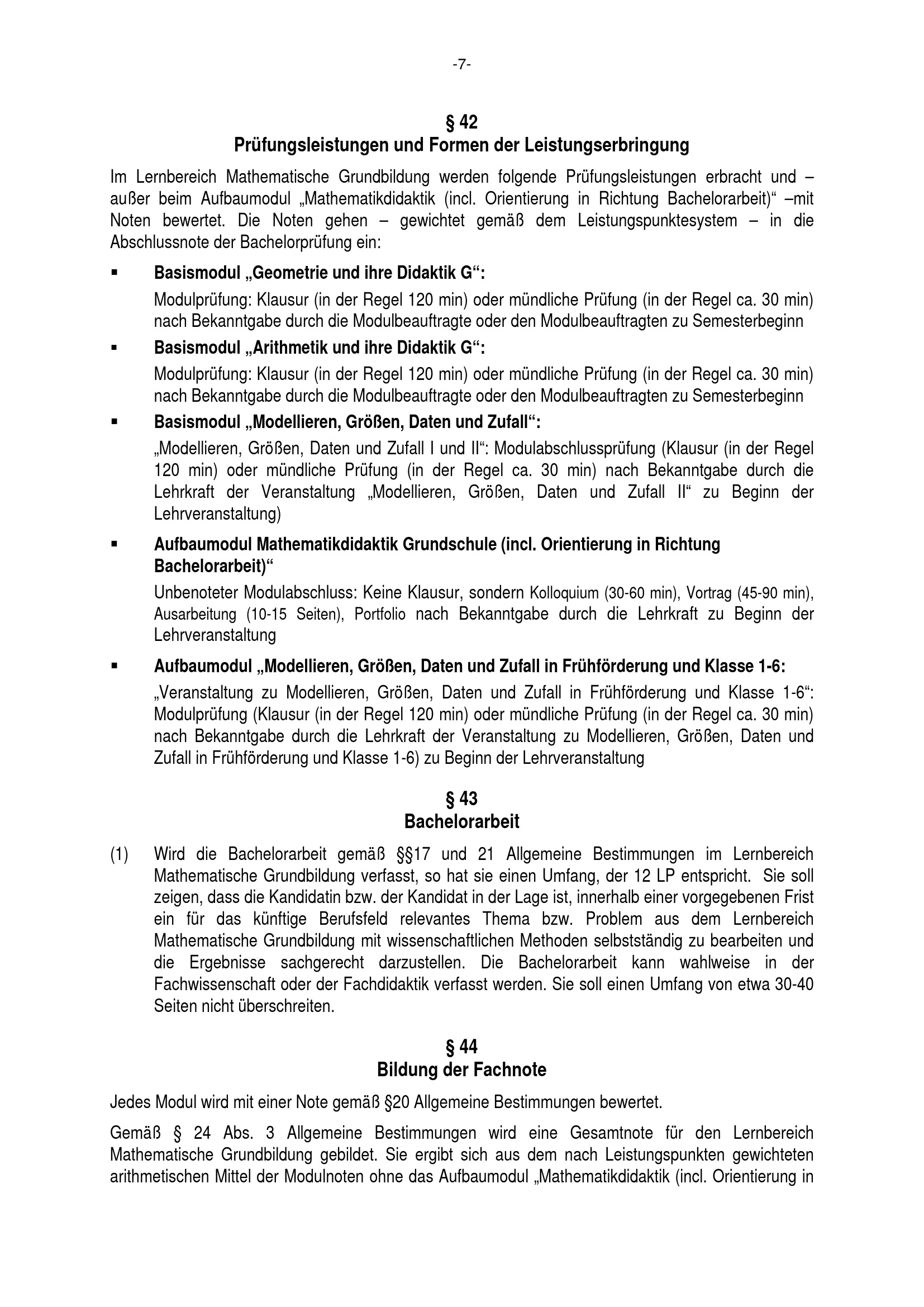 Besondere Bestimmungen der Prüfungsordnung für den Bachelorstudiengang Lehramt für sonderpädagogische Förderung mit dem Lernbereich Mathematische Grundbildung an der Universität Paderborn : vom 24. Juni 2014