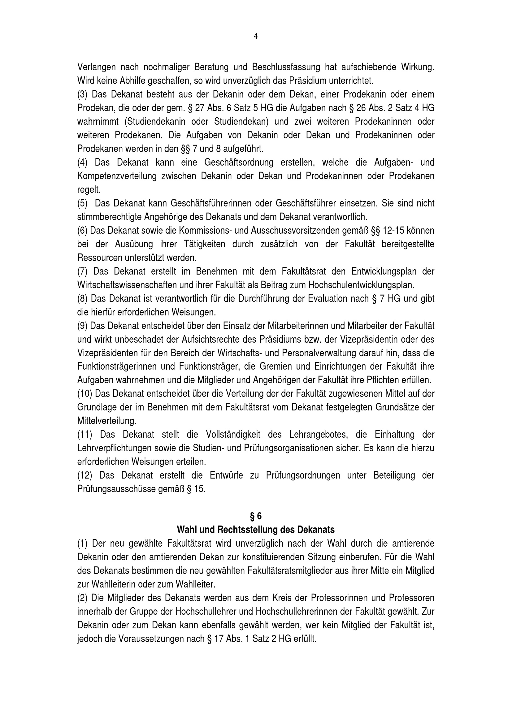 Fakultätsordnung der Fakultät für Wirtschaftswissenschaften an der Universität P[...]