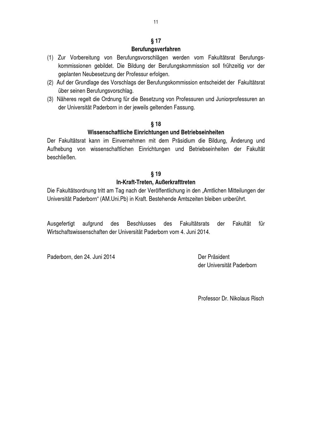 Fakultätsordnung der Fakultät für Wirtschaftswissenschaften an der Universität Paderborn : vom 24. Juni 2014