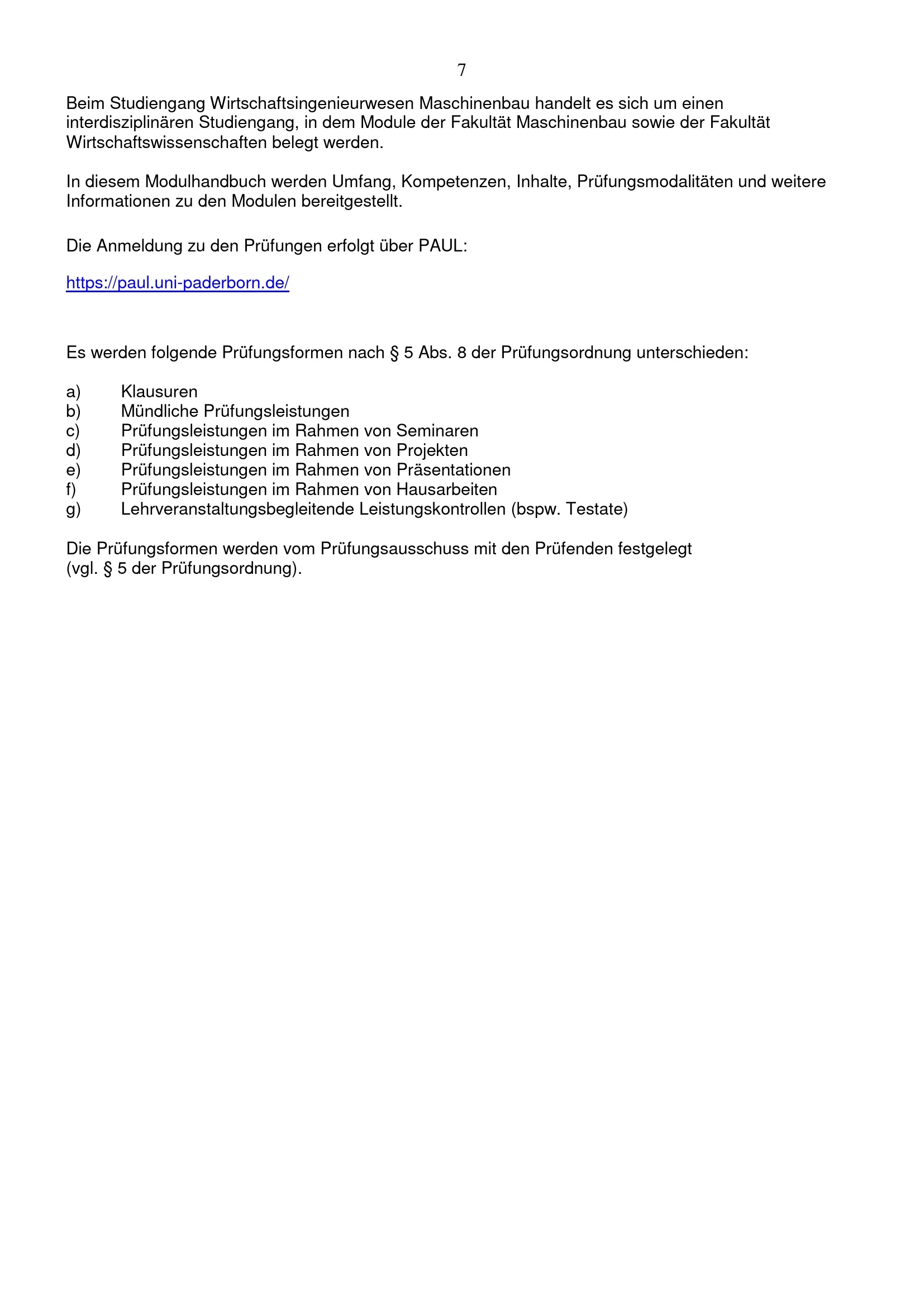 Modulhandbuch für den Bachelorstudiengang Wirtschaftsingenieurwesen Studienrichtung Maschinenbau an der Universität Paderborn : vom 18. August 2014