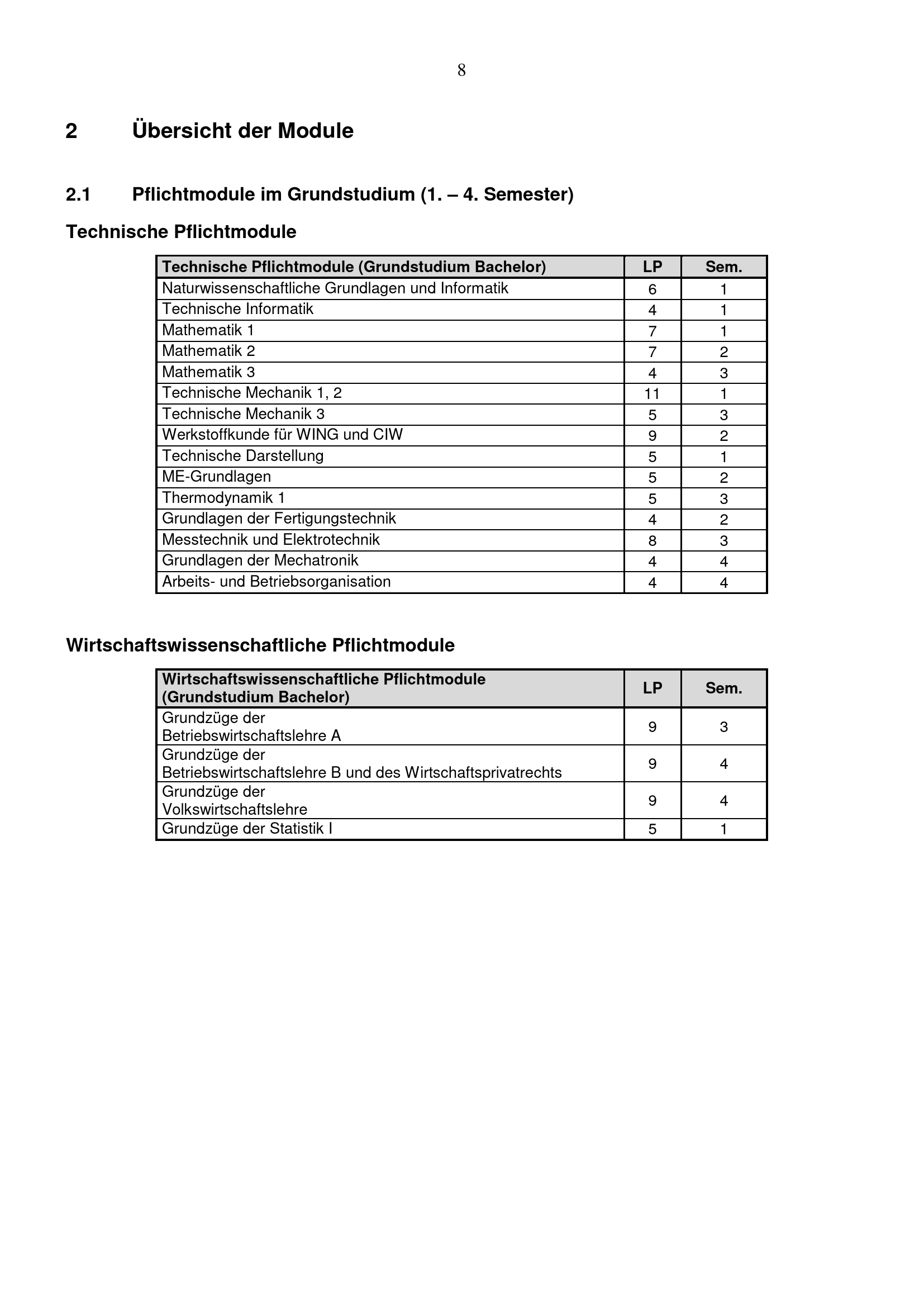 2.1 Pflichtmodule im Grundstudium (1. – 4. Semester)