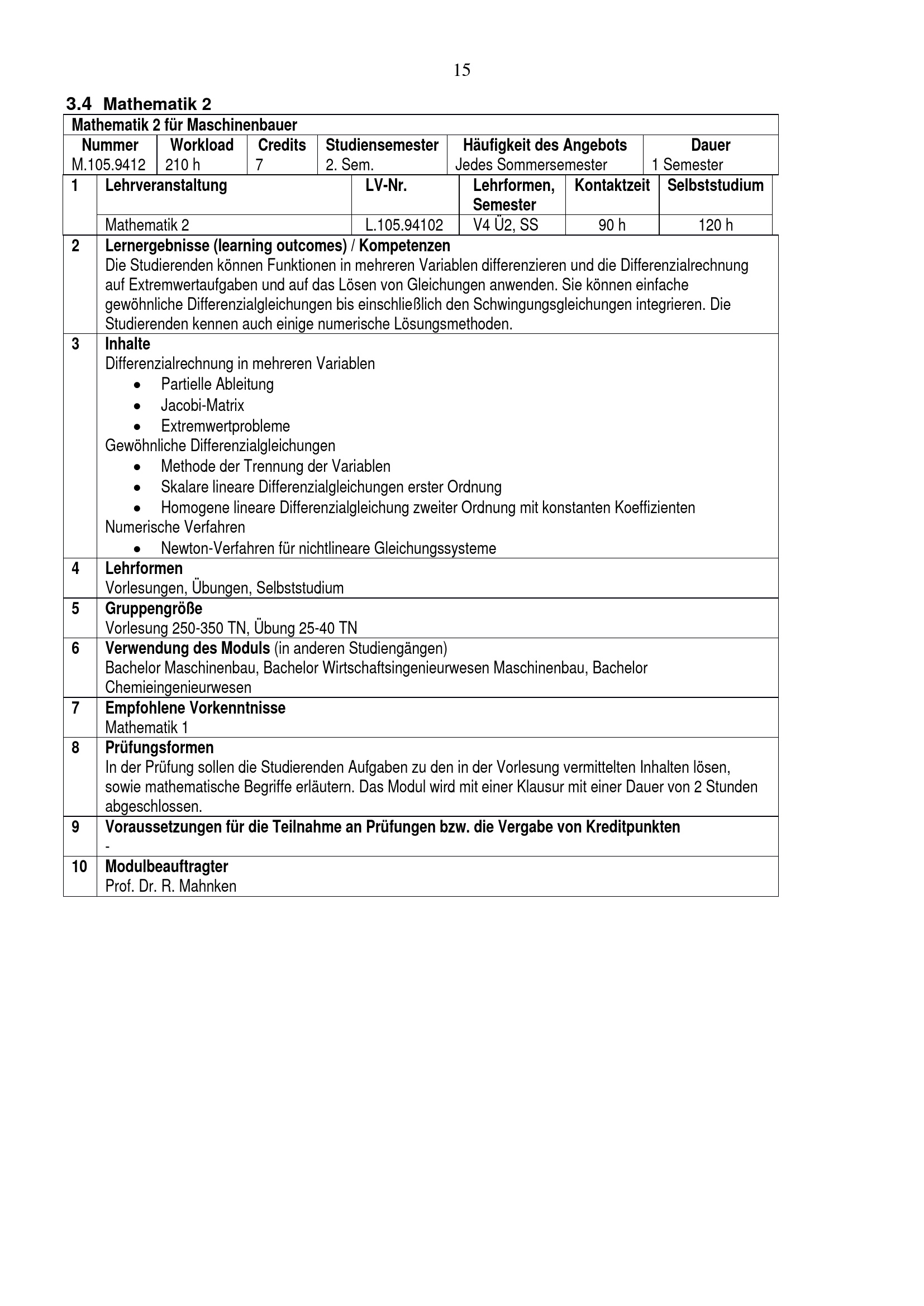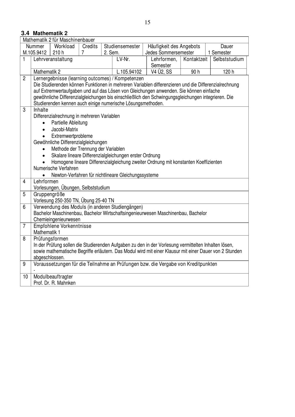 Modulhandbuch für den Bachelorstudiengang Wirtschaftsingenieurwesen Studienrichtung Maschinenbau an der Universität Paderborn : vom 18. August 2014