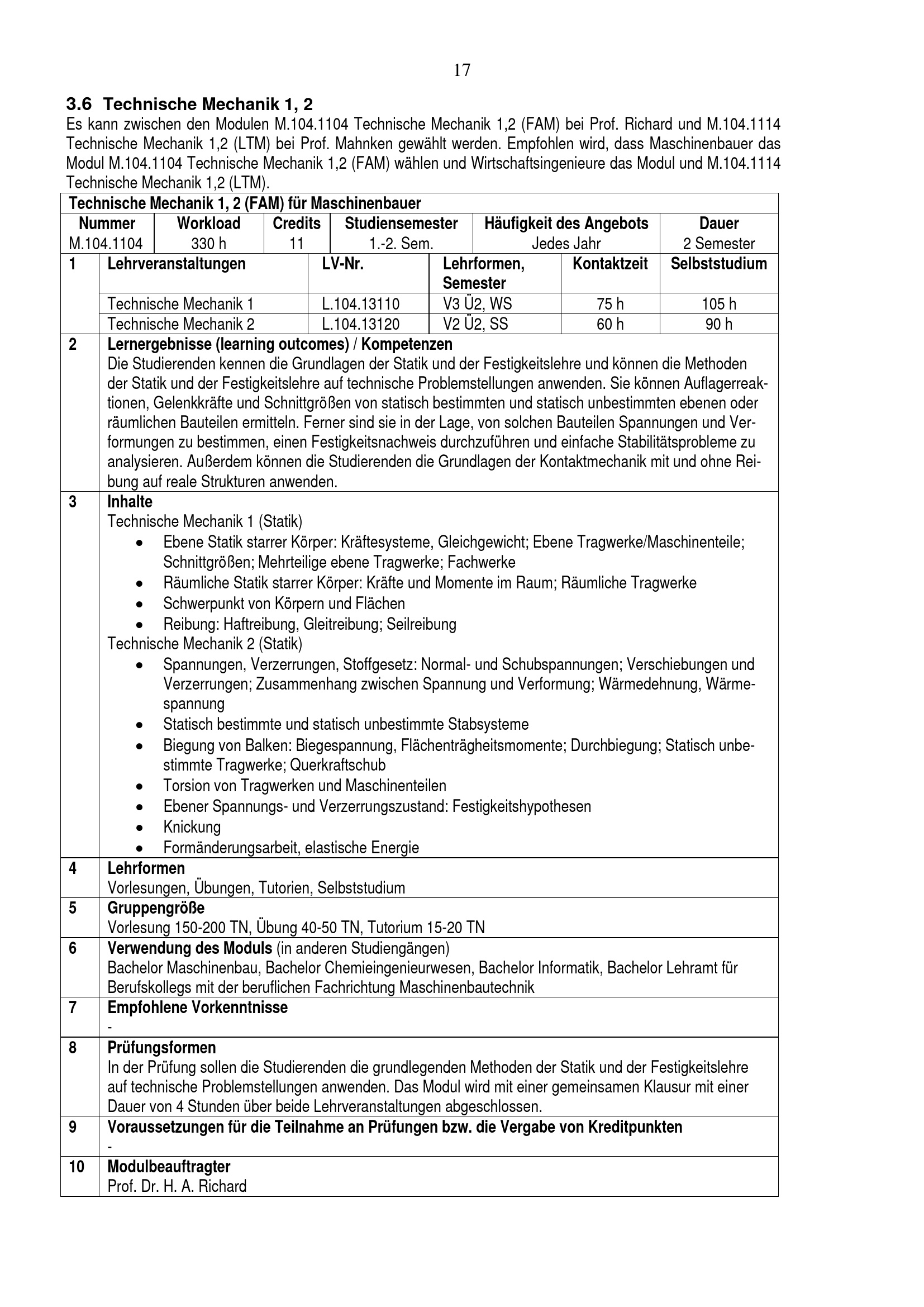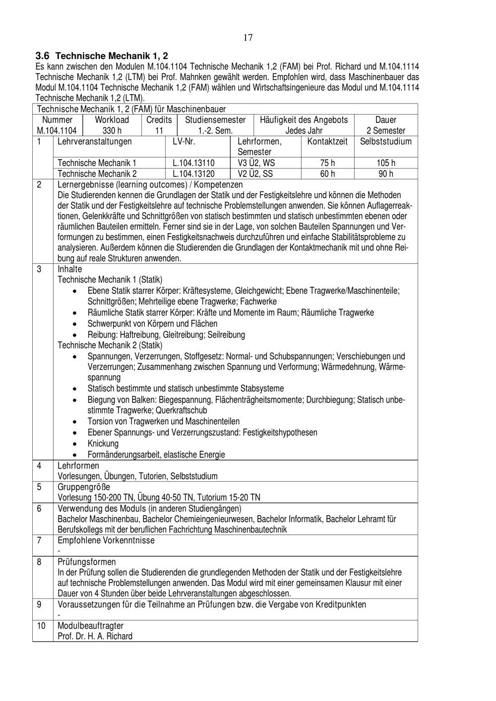 Modulhandbuch für den Bachelorstudiengang Wirtschaftsingenieurwesen Studienrichtung Maschinenbau an der Universität Paderborn : vom 18. August 2014