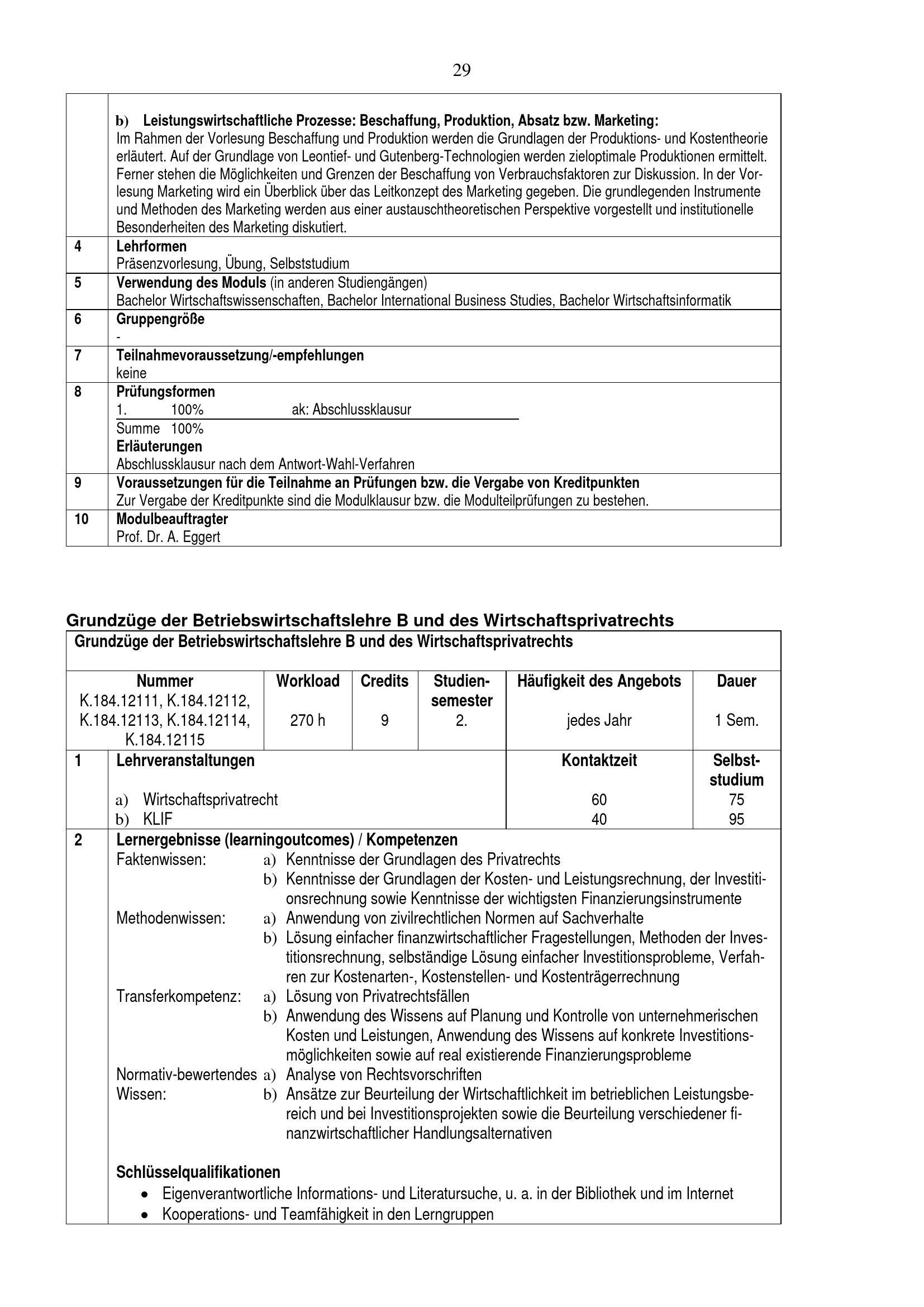 Grundzüge der Betriebswirtschaftslehre B und des Wirtschaftsprivatrechts