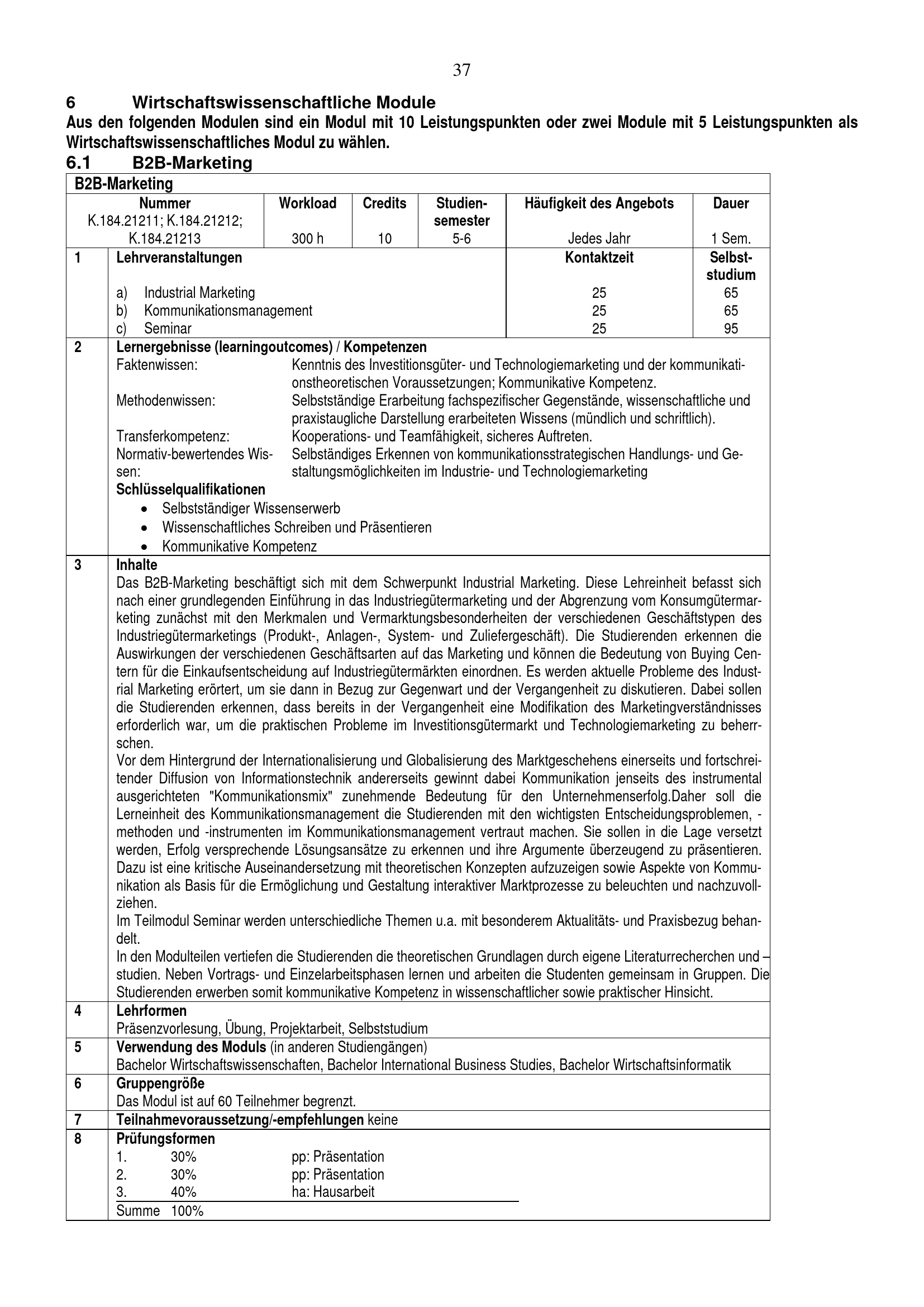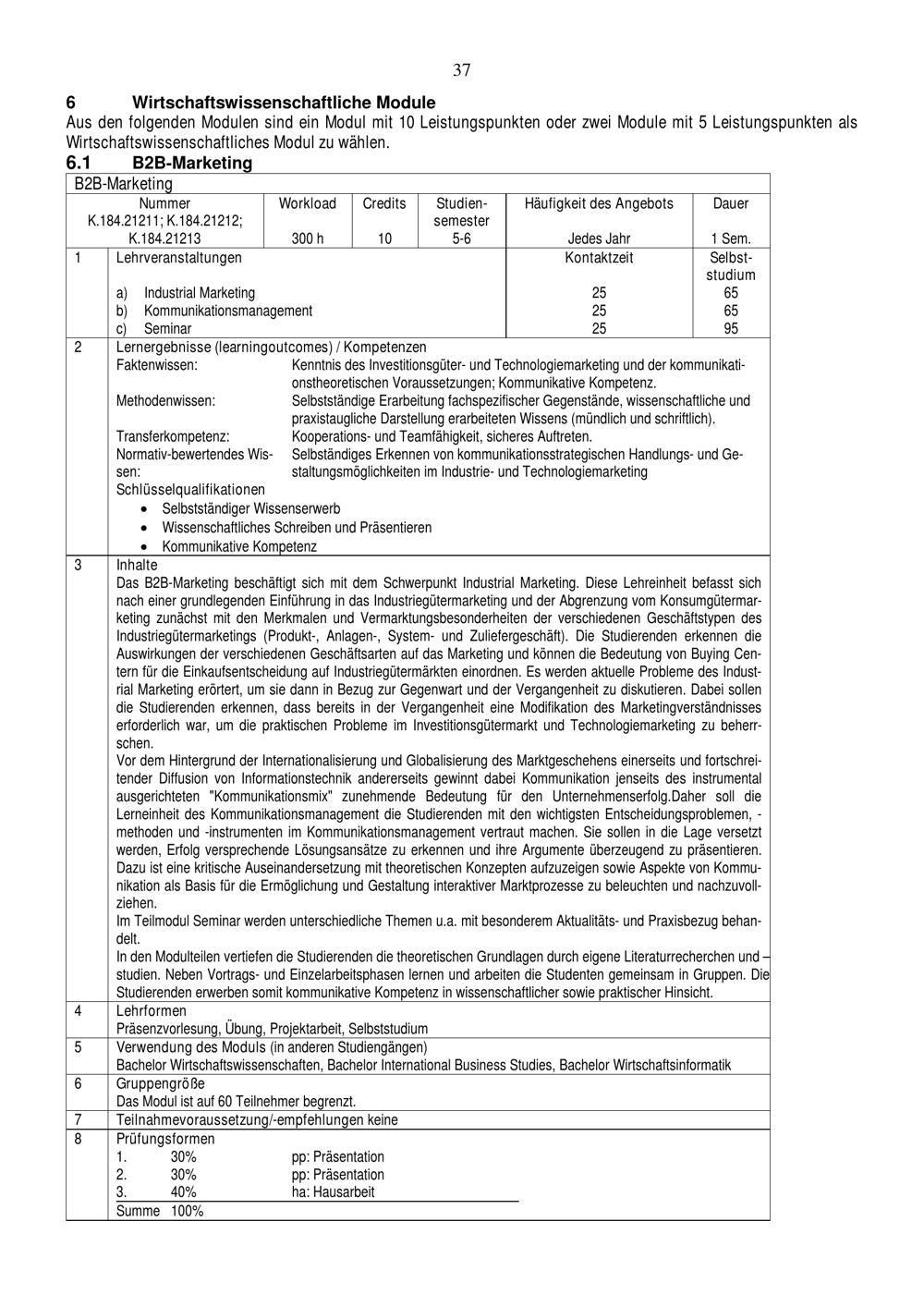 Modulhandbuch für den Bachelorstudiengang Wirtschaftsingenieurwesen Studienrichtung[...]