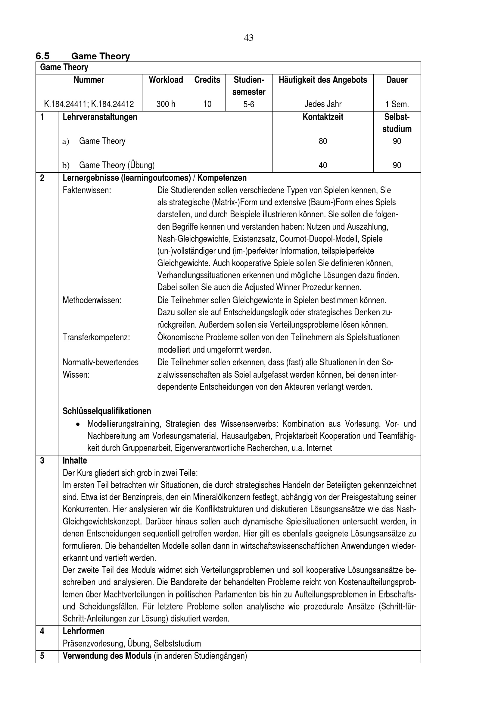 6 Wirtschaftswissenschaftliche Module