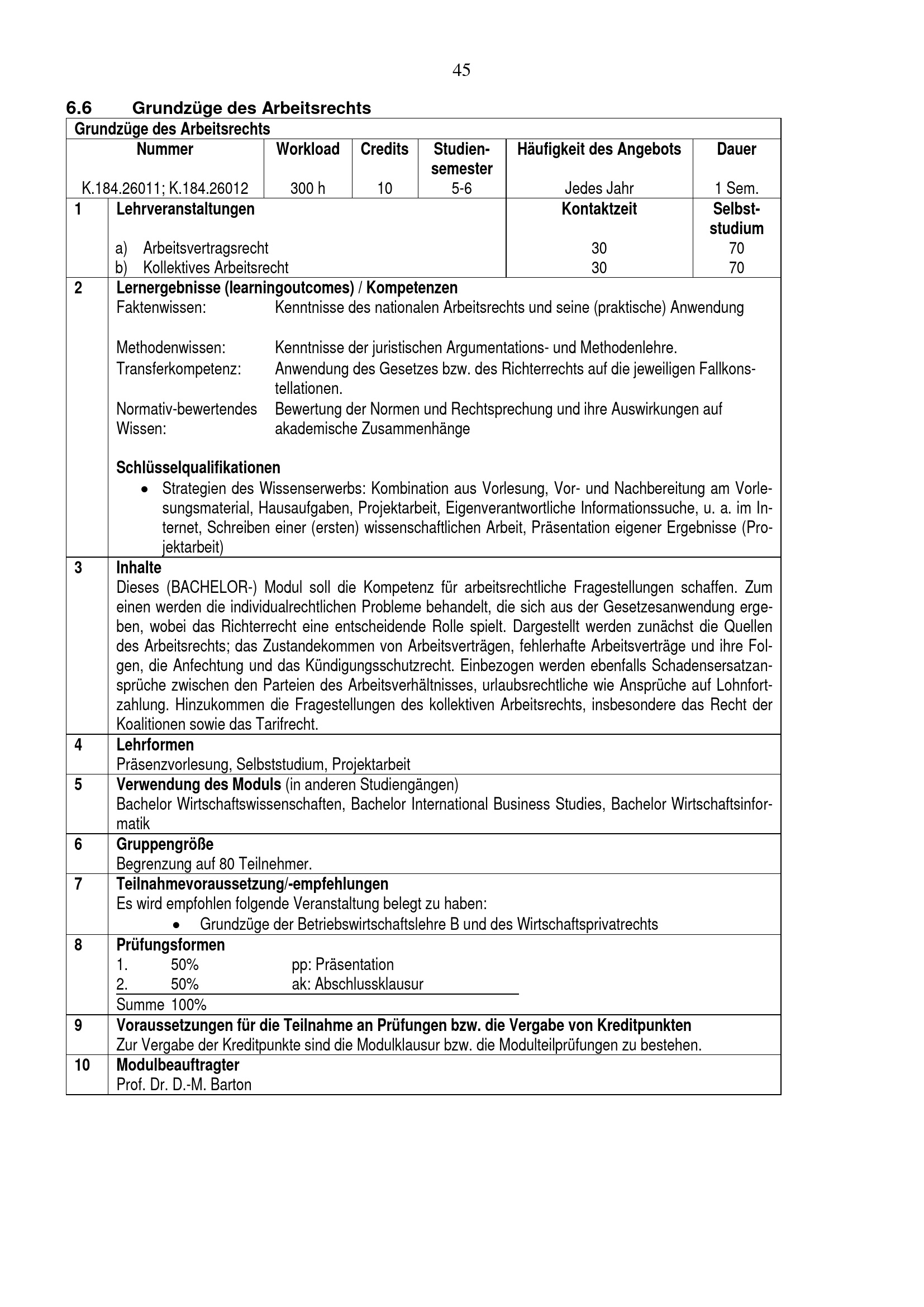 6 Wirtschaftswissenschaftliche Module