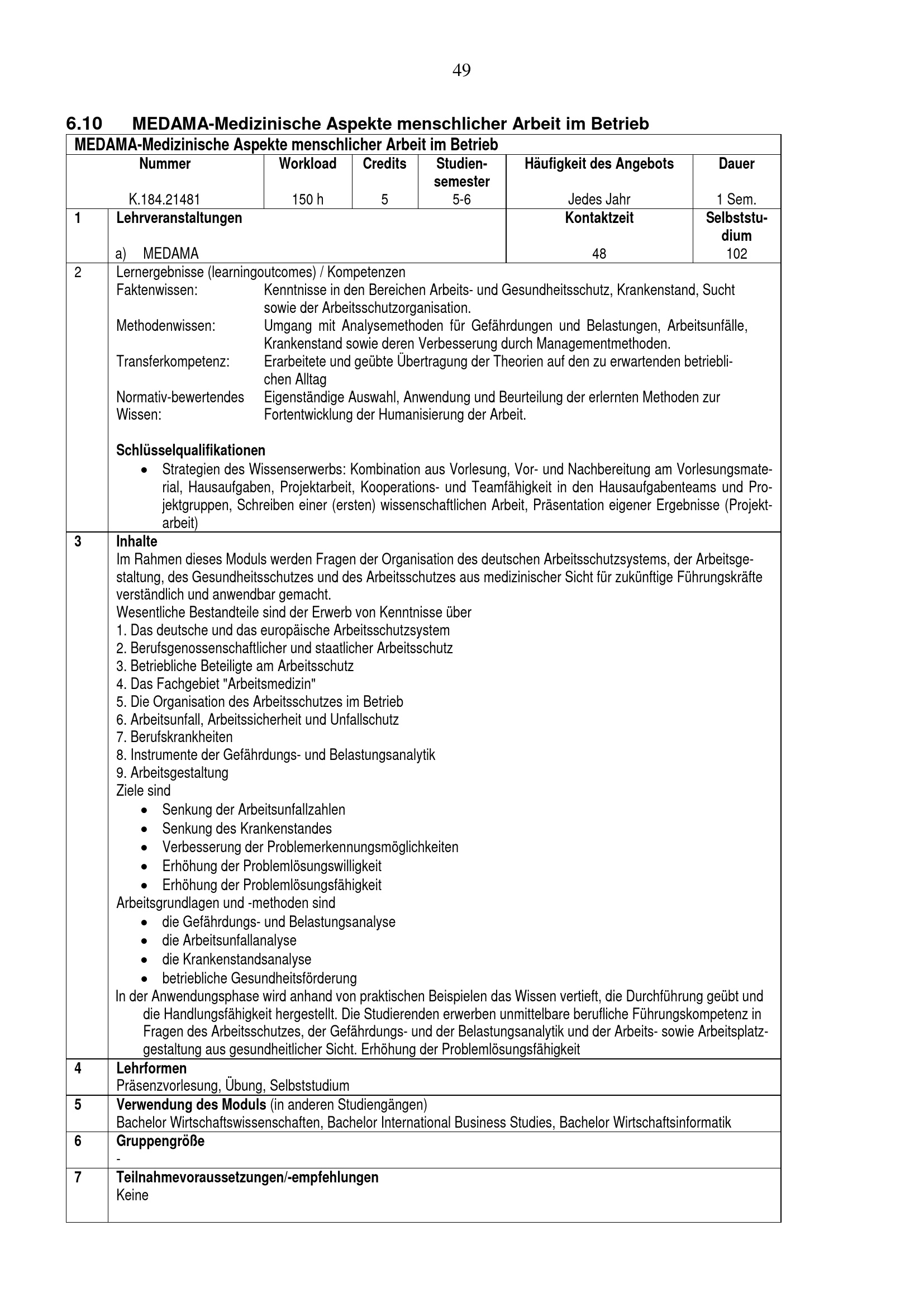 6.10 MEDAMA-Medizinische Aspekte menschlicher Arbeit im Betrieb