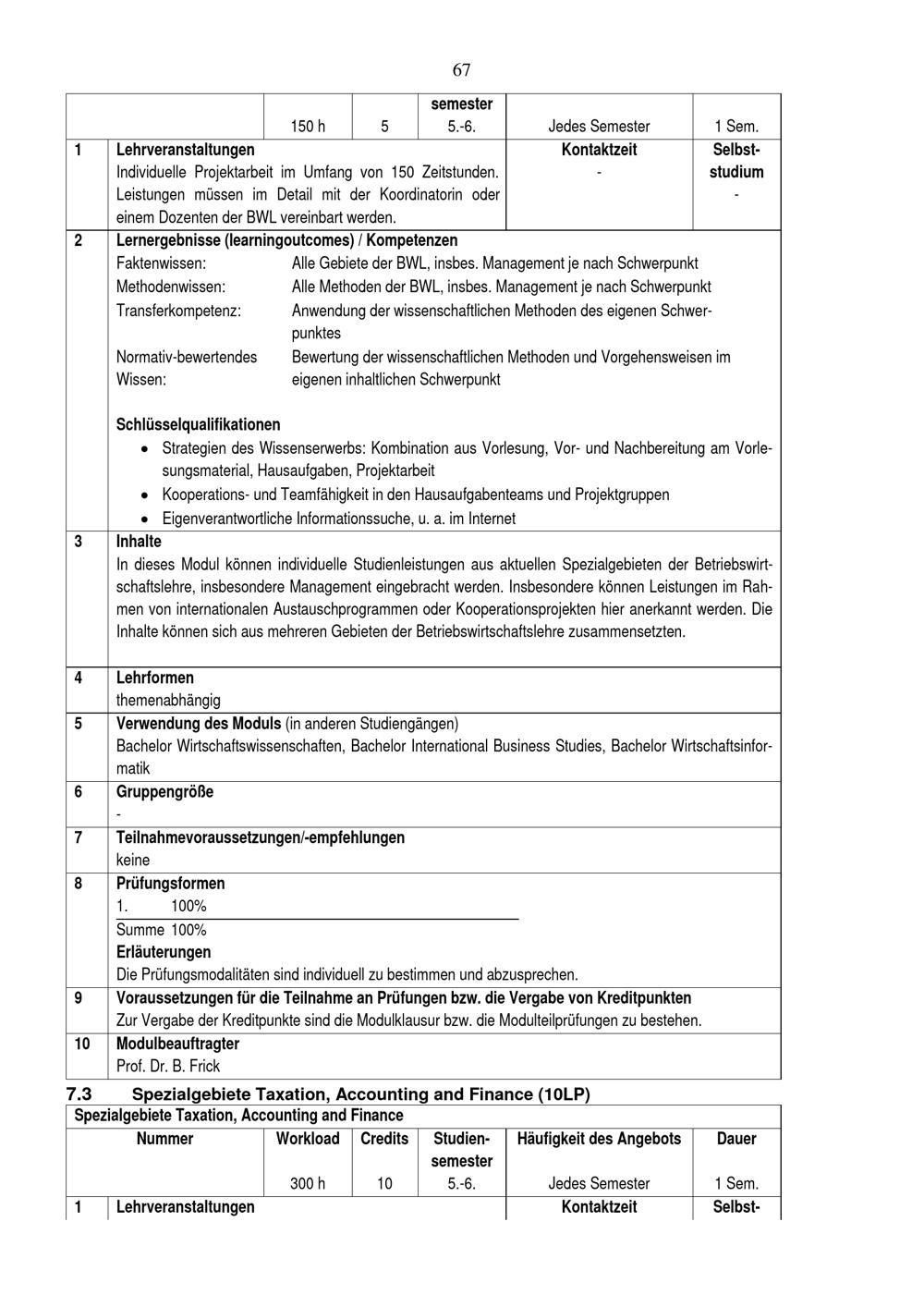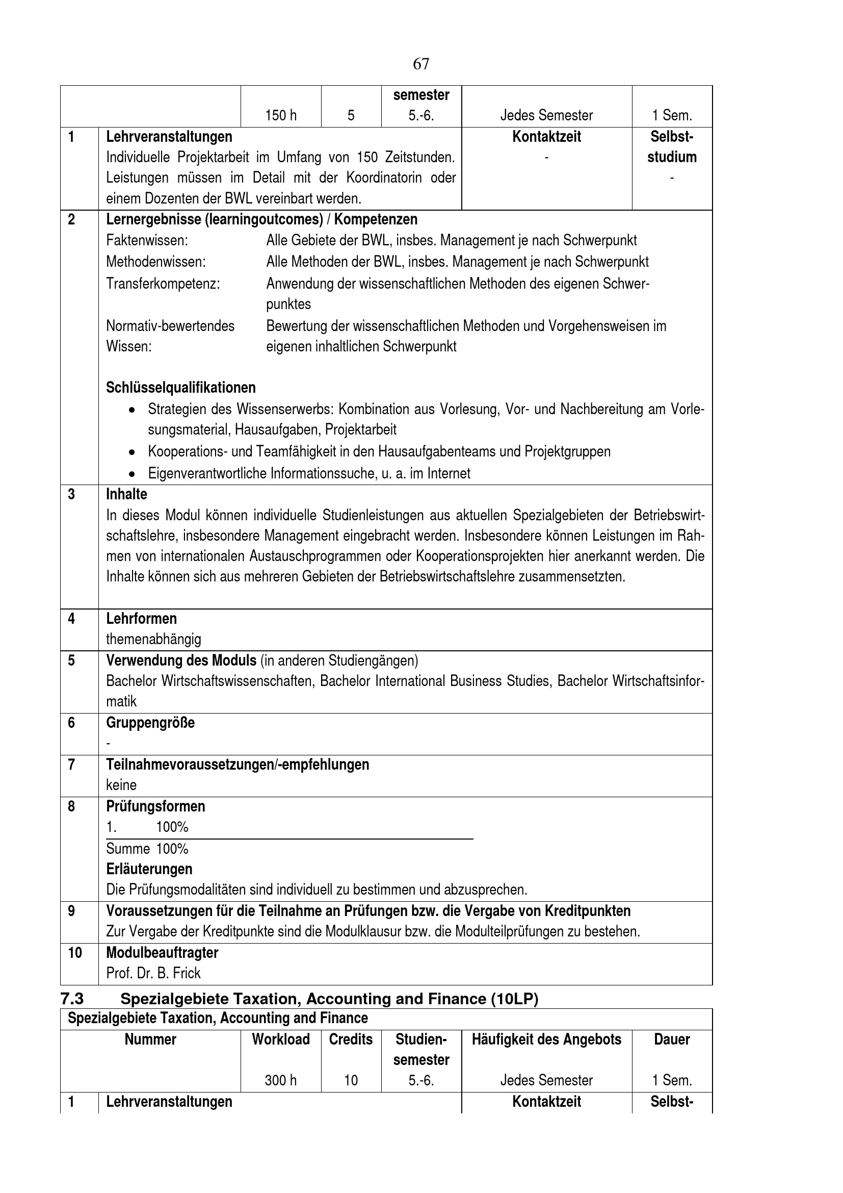 7.3 Spezialgebiete Taxation, Accounting and Finance (10LP)