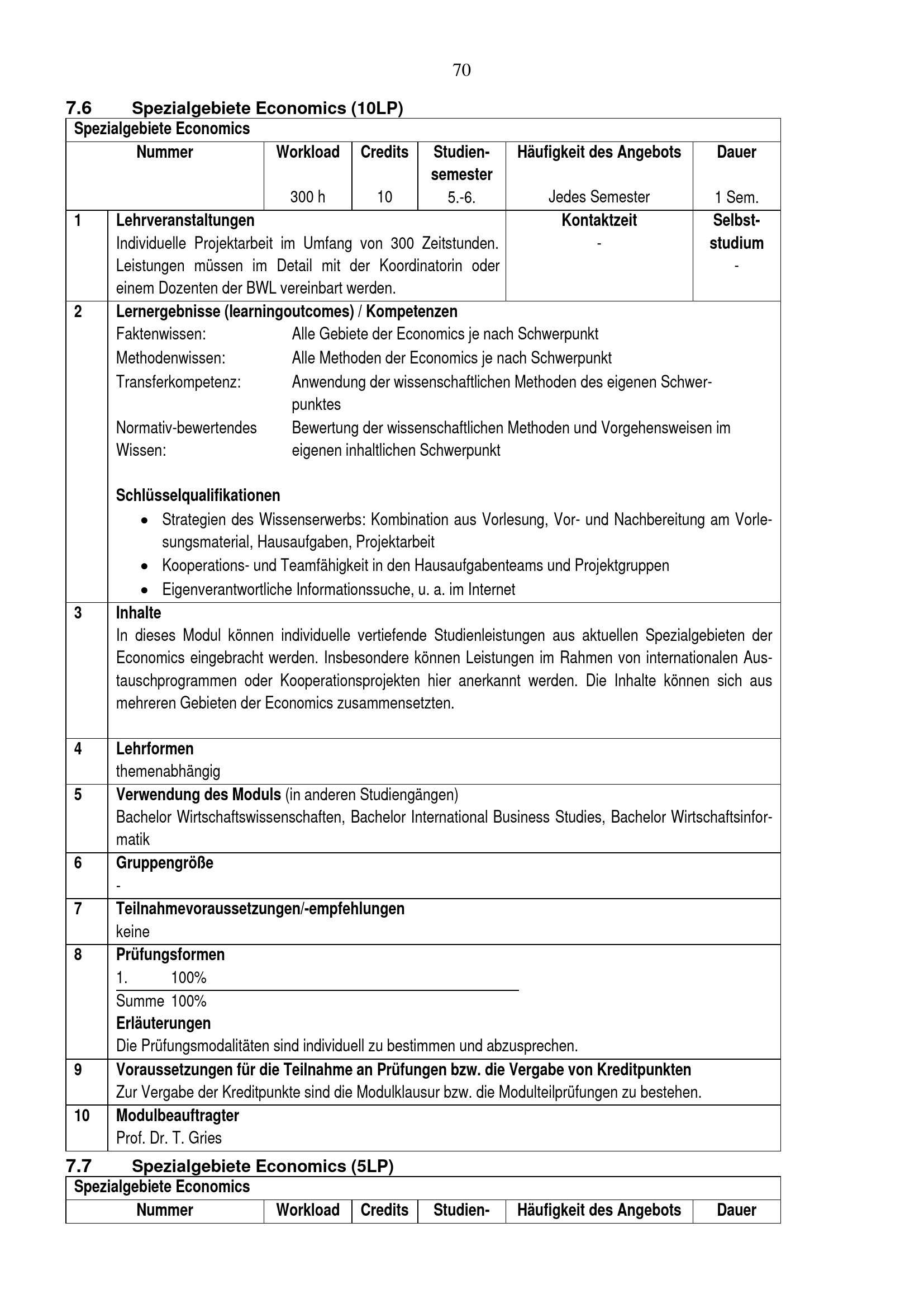 7 Wirtschaftswissenschaftliche Spezialmodule