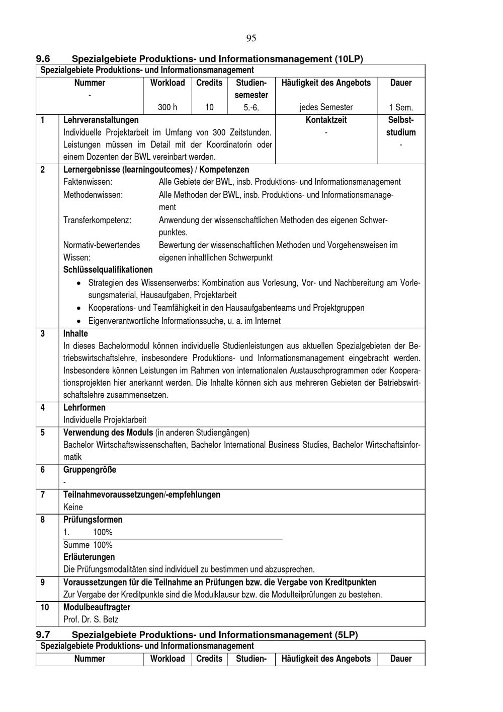 9.6 Spezialgebiete Produktions- und Informationsmanagement (10LP)