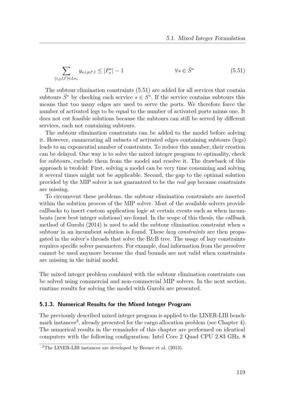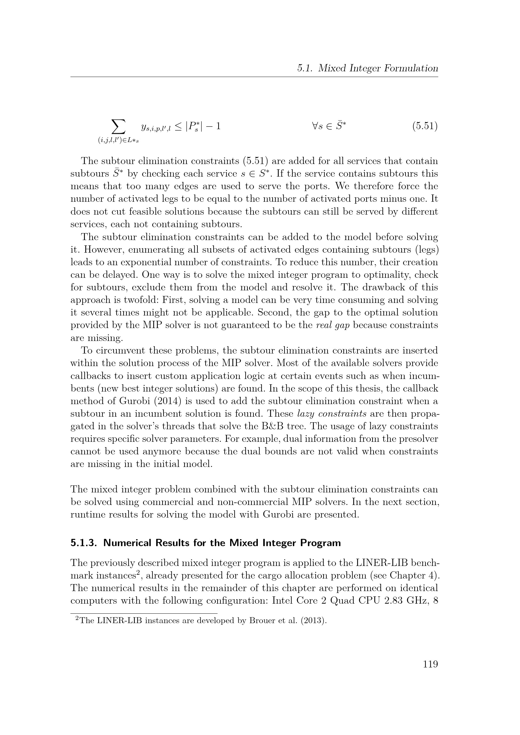 Numerical Results for the Mixed Integer Program