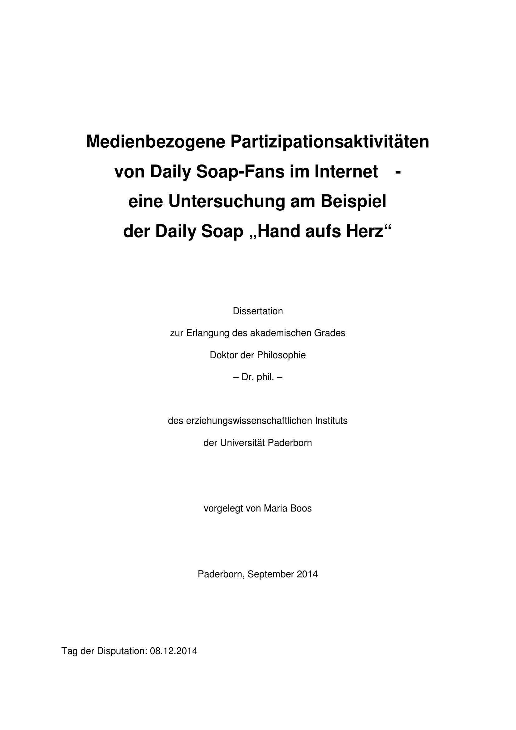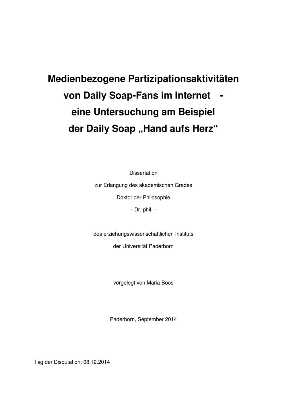 Medienbezogene Partizipationsaktivitäten von Daily Soap-Fans im Internet : eine Untersuchung am Beispiel der Daily Soap „Hand aufs Herz“