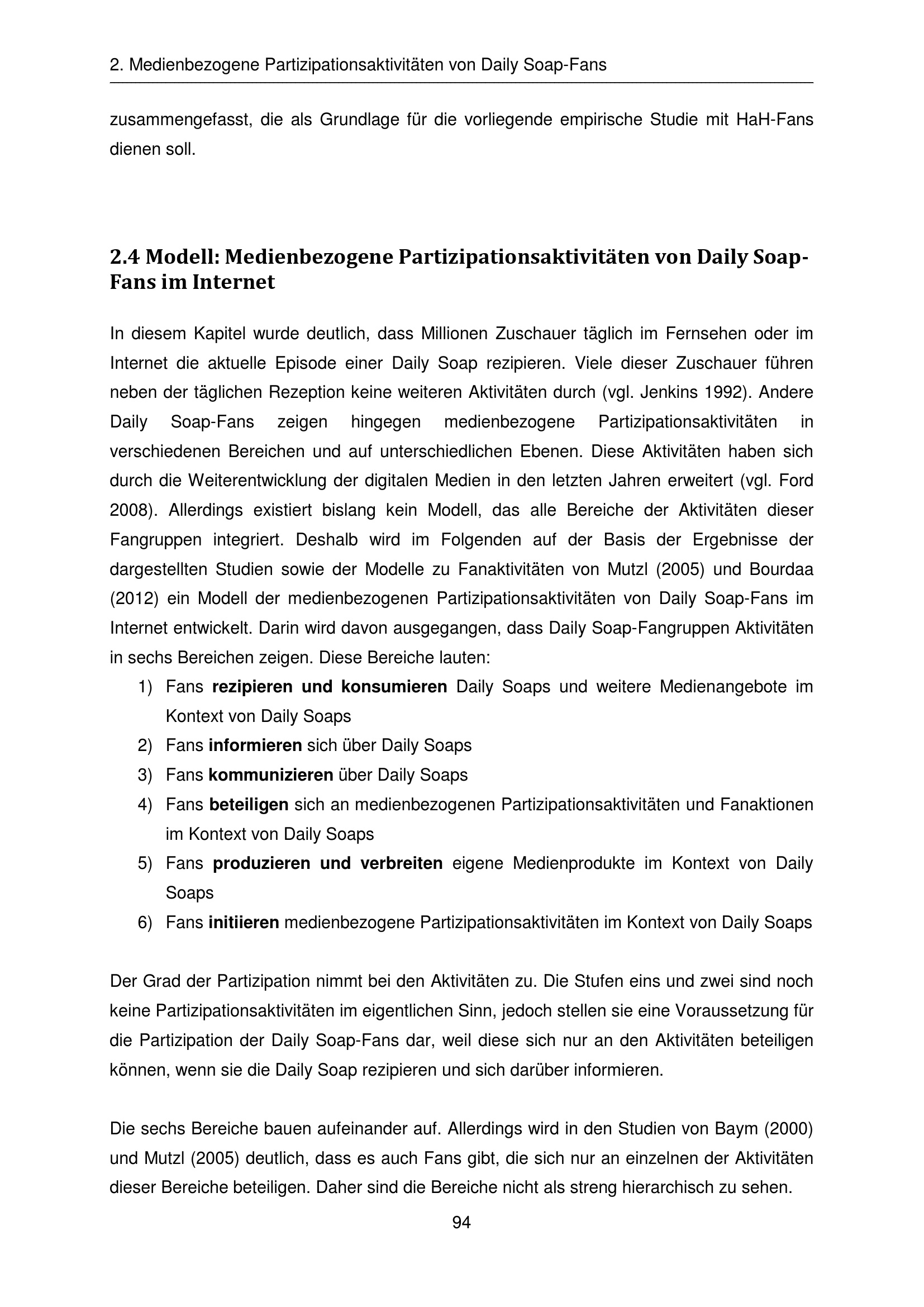 2.4 Modell: Medienbezogene Partizipationsaktivitäten von Daily Soap-Fans im Inte[...]