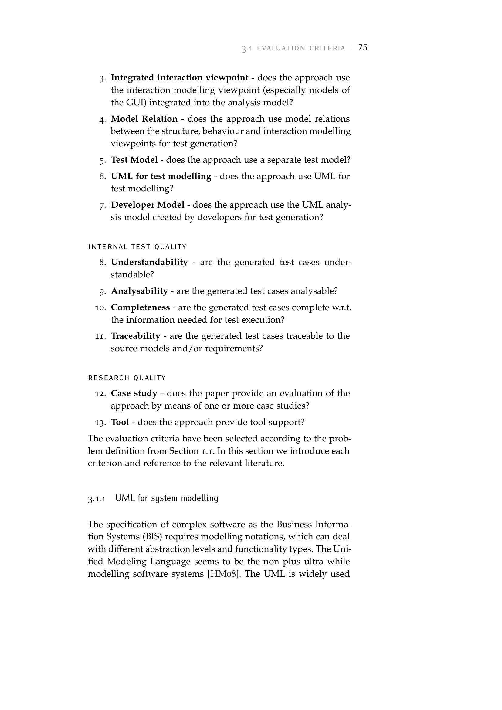 3.1 Evaluation criteria