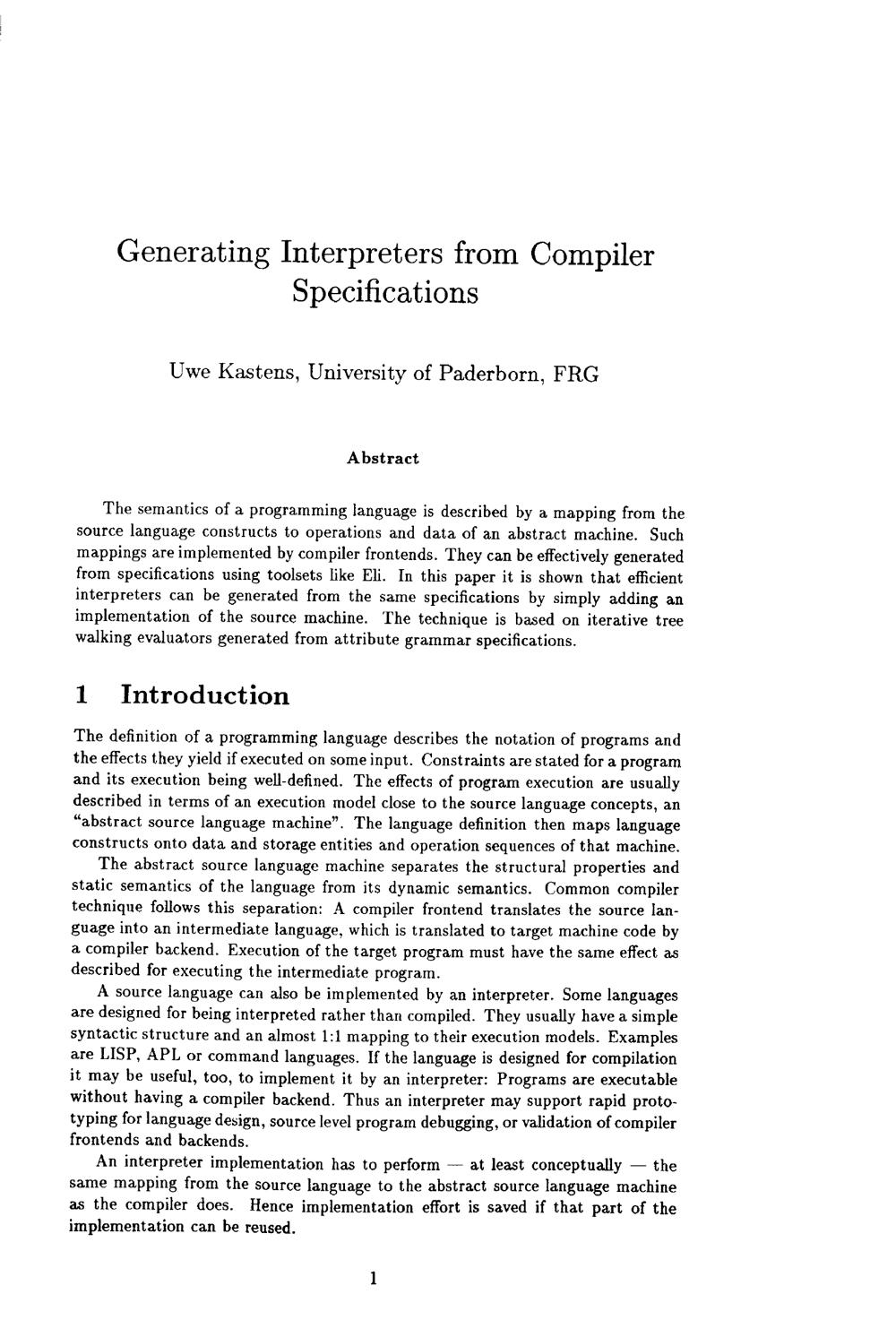 Generating interpreters from compiler specifications