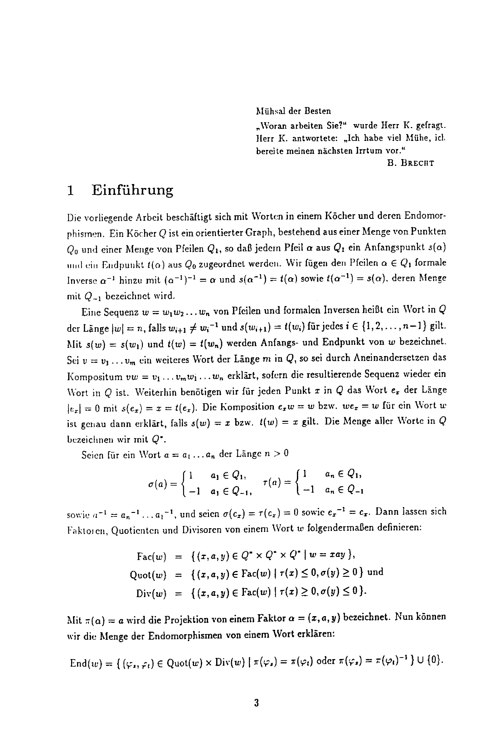 Endomorphismen von Worten in einem Köcher