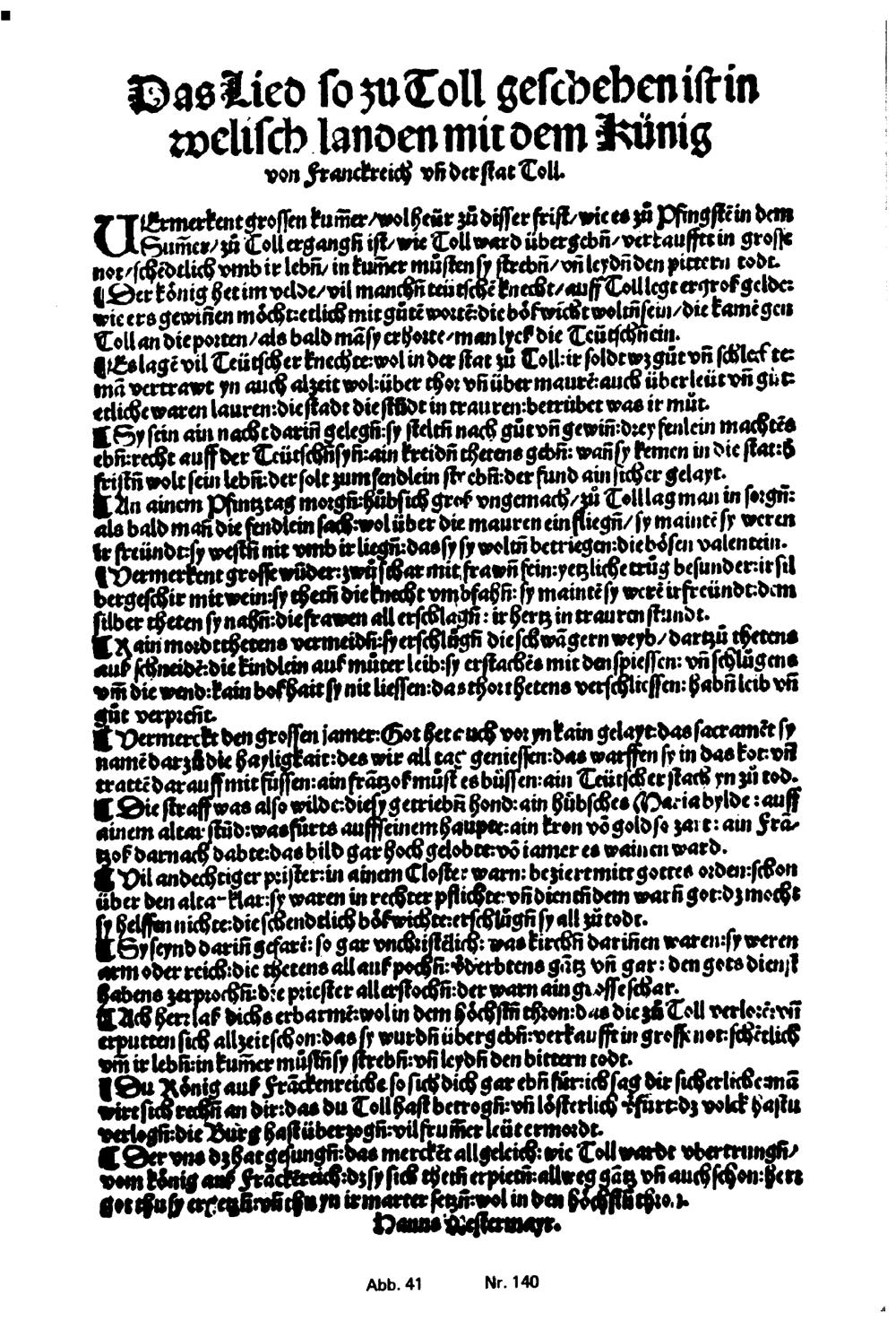 Einblattdrucke von den Anfängen bis 1555