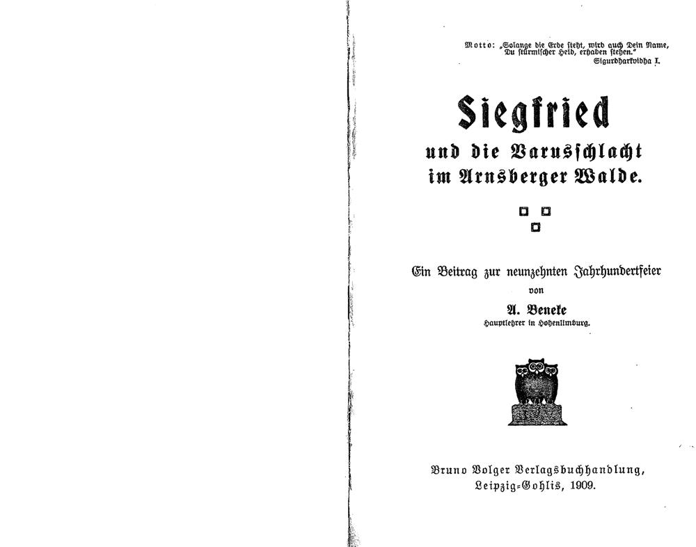 Siegfried und die Varusschlacht im Arnsberger Walde : ein Beitrag zur neunzehnten Jahrhundertfeier / von A. Beneke