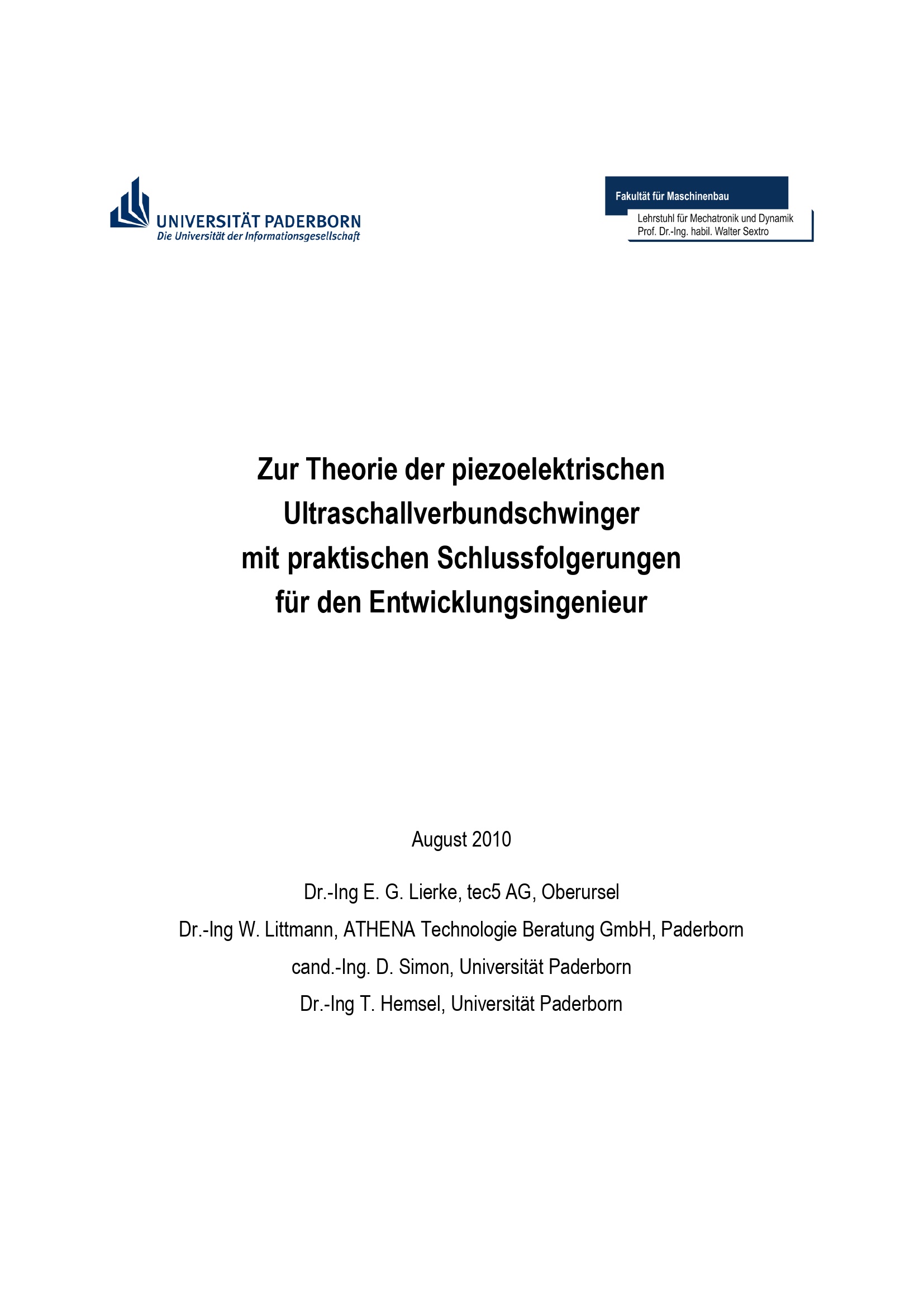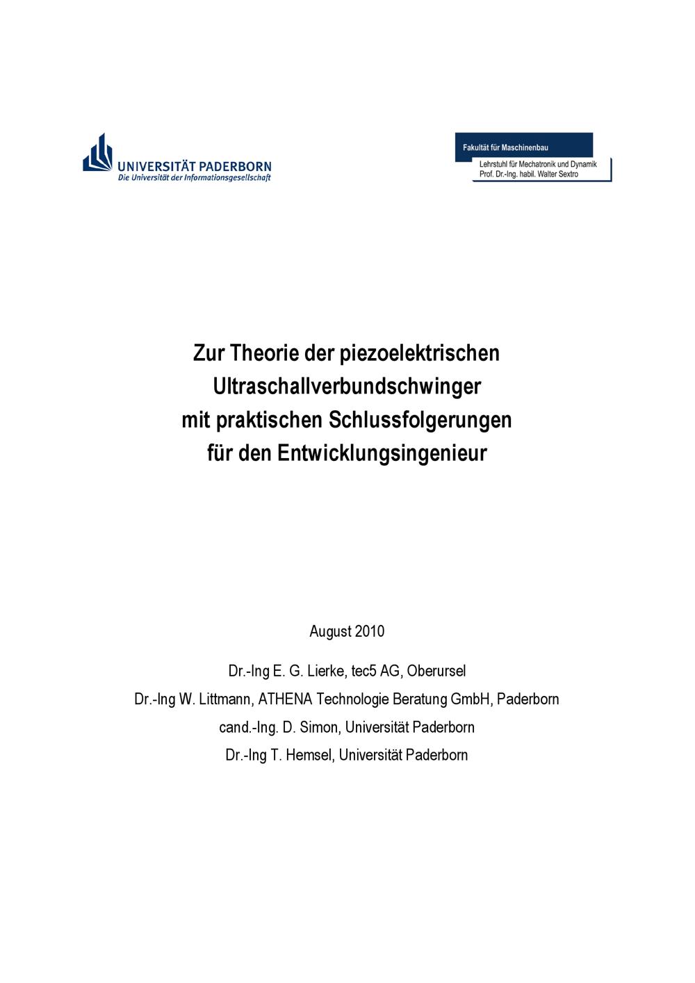 Zur Theorie der piezoelektrischen Ultraschallverbundschwinger mit praktischen Schlussfolgerungen für den Entwicklungsingenieur