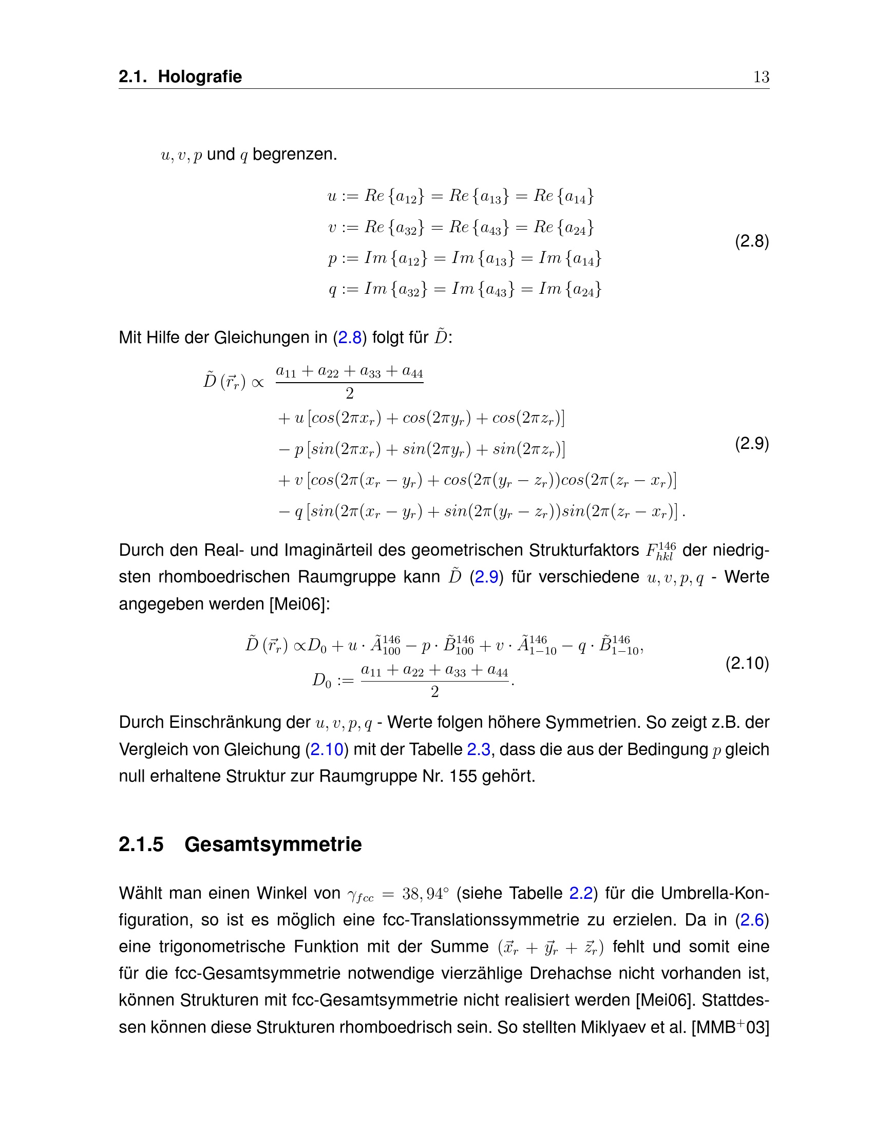 2.1.5 Gesamtsymmetrie
