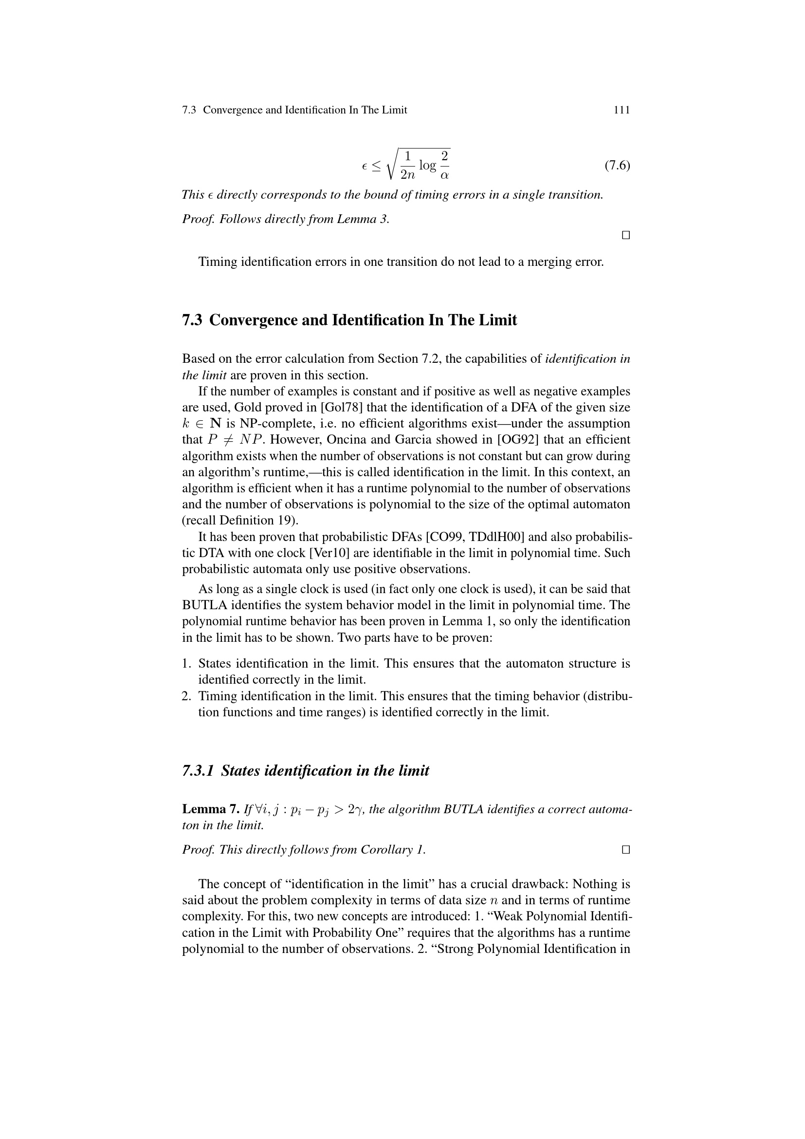 Convergence and Identification In The Limit