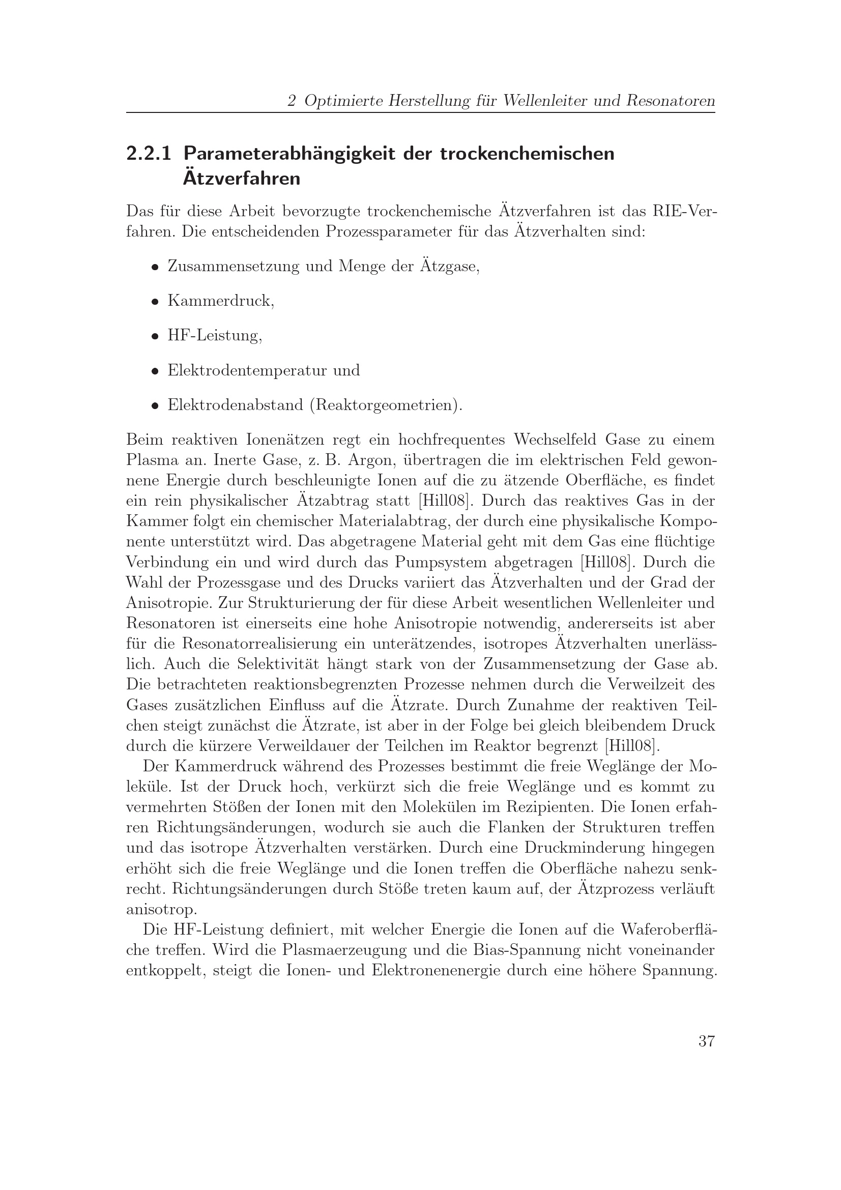 2.2.1 Parameterabhängigkeit der trockenchemischen Ätzverfahren